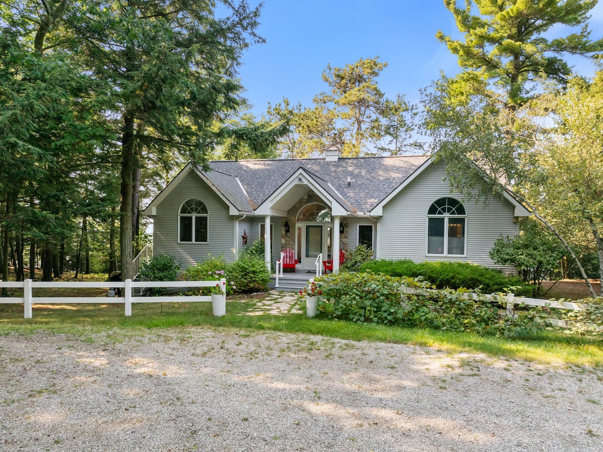 Million Dollar View! Over 200 five-star reviews! Bluewater Cottage overlooks majestic Lake Michigan on a large, wooded waterfront property just minutes from downtown Charlevoix, Castle Farms, and Lake Michigan beaches. Nestled in the storybook neighborhood of Boulder Park among Earl Young's famous stone mushroom houses. You will enjoy panoramic views of Lake Michigan from most rooms, a huge outdoor deck with plenty of seating, gas grill, and a private pebble beach with a firepit. Relax !!