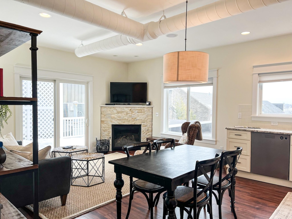 This modern condo is located in the heart of downtown and features quartz counter-tops, high-end appliances, gas fireplace, and 2 roof top decks with the best views in town! This modern condo is located in the heart of downtown and features quartz counter-tops, high-end appliances, gas fireplace, and 2 roof top decks with the best views in town! Enter this condo from your private entrance and stairway on Main Street between Trevor Furbay Fine Goods and Between The Covers Book Store.