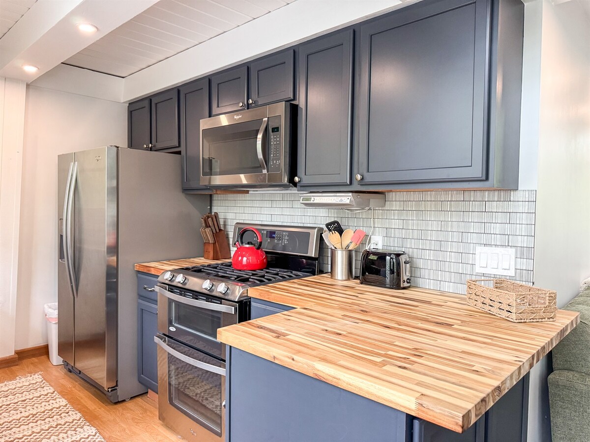A great location, northside. A must see. Across the street from Mt McSauba nature preserve trails for hiking, 5 minute walk to Lake MI dunes with a beautiful beach & a 2 minute walk to watch the sunset. 2 miles from downtown. Wheelway Bike path & disc golf. Very cozy atmosphere with a fully equipped kitchen, bring your essential oils and relax in the jacuzzi tub, very comfortable beds, fold down couch and cot if needed , washer/dryer, relax by the wood fireplace Sept-May, Fire pit May-Sept