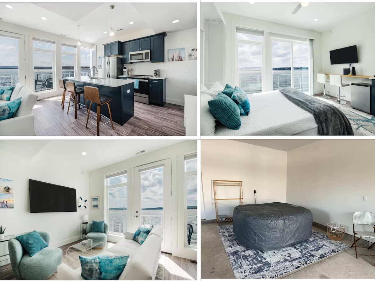 时尚湖滨度假屋,配备热水浴缸和皮划艇!