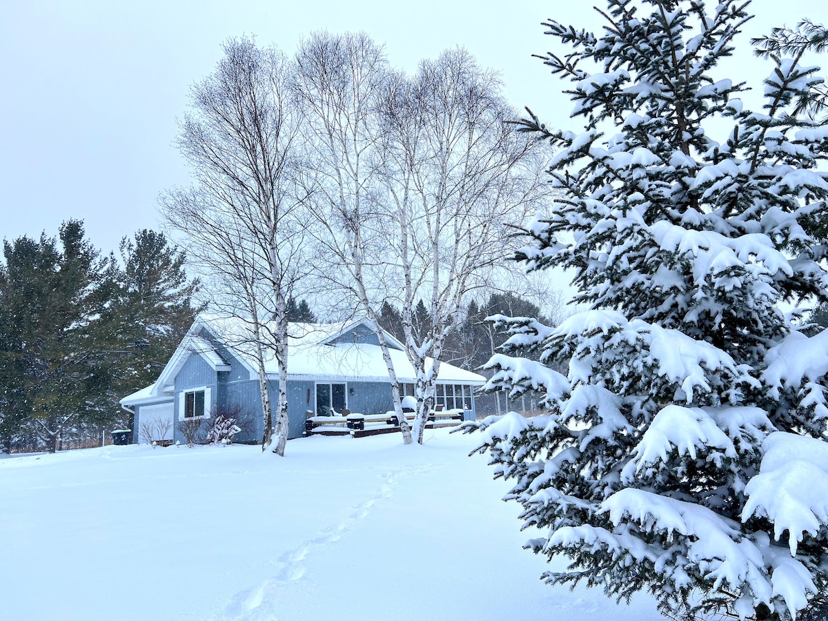 Fresh snow is BACK in Northern Michigan, and Starlight Cottage offers a cozy home base for a late-season ski or snowmobile weekend or winter escape for couples, families, and remote workers. Ski all day at nearby Nub’s Nob or The Highlands, then come home to wooded privacy, deck views of surrounding woods and wildlife, and a nighttime blanket of stars. Plenty of room to spread out, fast Wi-Fi, and easy access to charming Petoskey and Harbor Springs for restaurants, shops, and lake views.