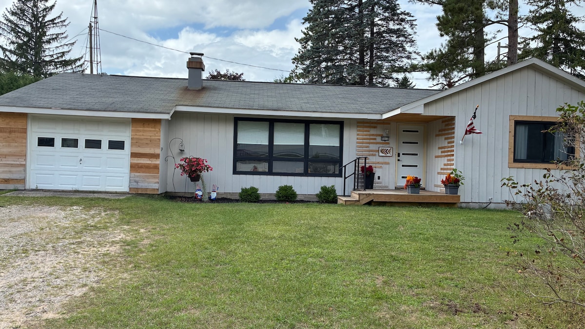 A beautiful 1700 square ft home on Paradise Lake. The home is on 2.5 acres and just 5 miles from Mackinaw City. Hulu and digital antenna TV with smart TV's in the living room and both bedrooms. A couple minute walk brings you to the sandy bottom lake which is perfect for a couples retreat or family getaway. Guest will enjoy our 275 feet of private lakefront with a 50 ft dock. This property is centrally located between many of northern Michigan’s attractions.