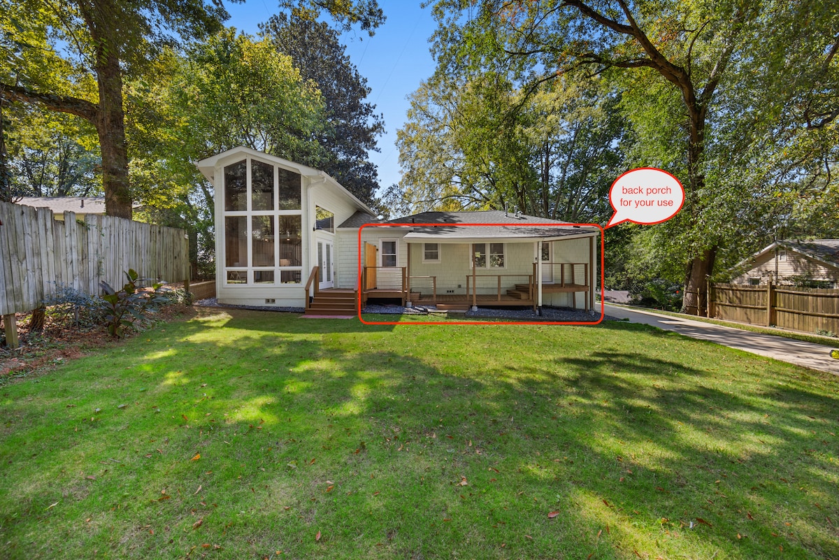 New Guest House in Virginia Highlands (3-10 minute walk to 45 restaurants, bars and shops). Walk to the BeltLine, Piedmont Park and Botanical Garden. Self checkin, free off-street covered parking, kitchen, washer/dryer and luxury linens. Light and airy with 18' vaulted ceilings!. Plenty of room for work and play - perfect for a weekend getaway or extended stay!