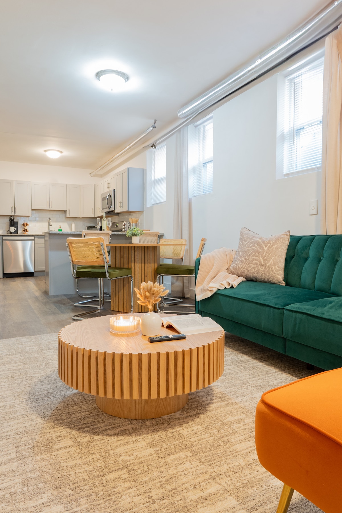 Peaceful and serene basement studio apartment. Note: Basement floor to ceiling height is about 74 inches (6’ 1”). If you are tall this apartment may not be a good fit for you! 10 minute walk to the 8th Street Light Rail station. 45 minutes NYC 20 minutes EWR Cozy, clean and modern space. Brand new renovation. Full bed with hybrid mattress for a comfortable night sleep. Memory foam sofa cushions, Smart TV. Prime, Disney and Netflix Modern kitchen with microwave, air fryer, utensils.