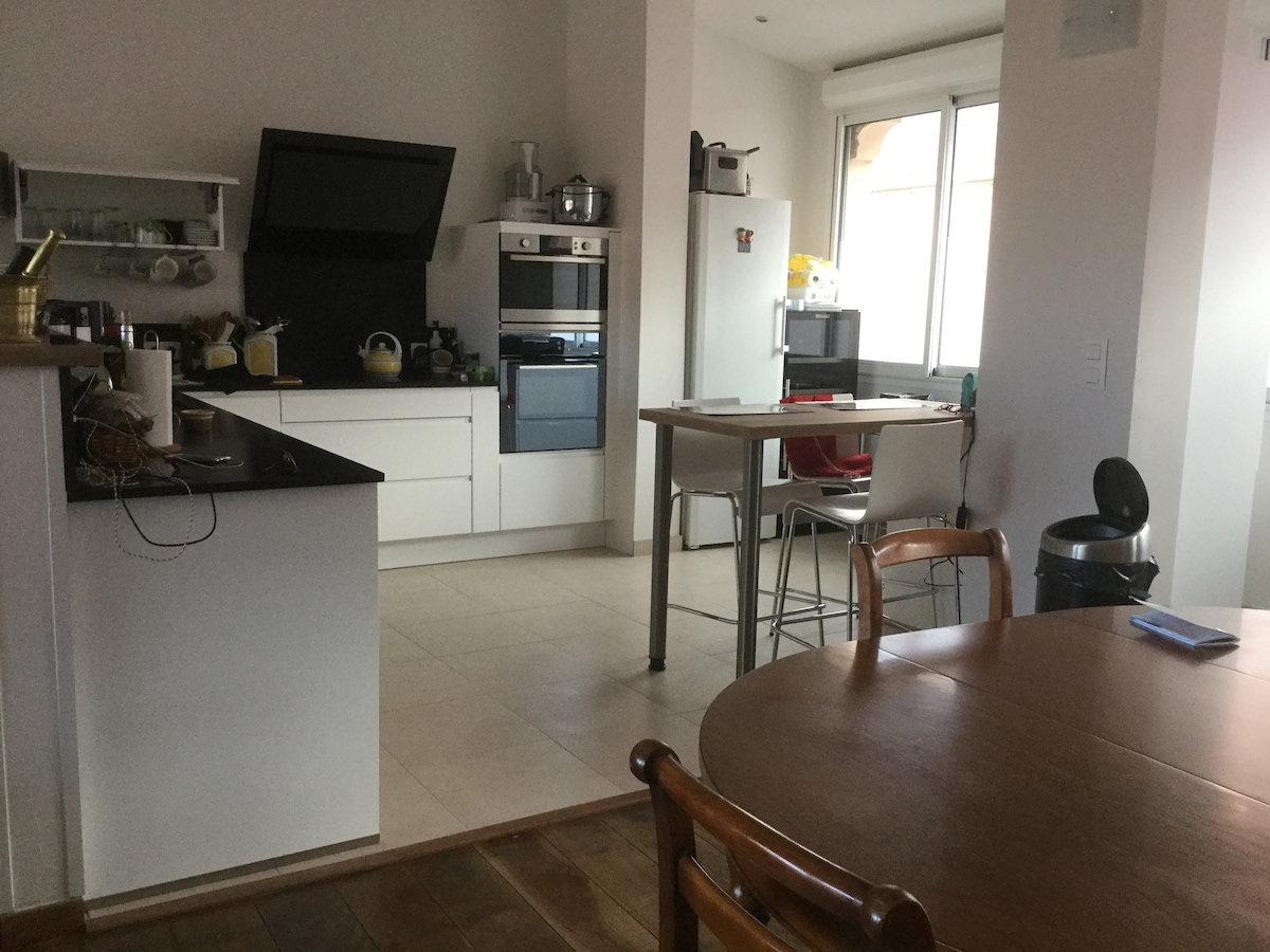 Françoise and Charlie welcome you in a completely renovated (in 2018) duplex apartment. The 20 SQM room is adequate to host a couple with or without kid. Big separate double bathroom and toilets dedicated to hosts. Gorgeous homemade breakfast available on sunny and wind protected terrace with sea view Easy access to local beaches and downtown. Host table available on request : 2 menus made from fresh products locally sourced and grilled (plancha)