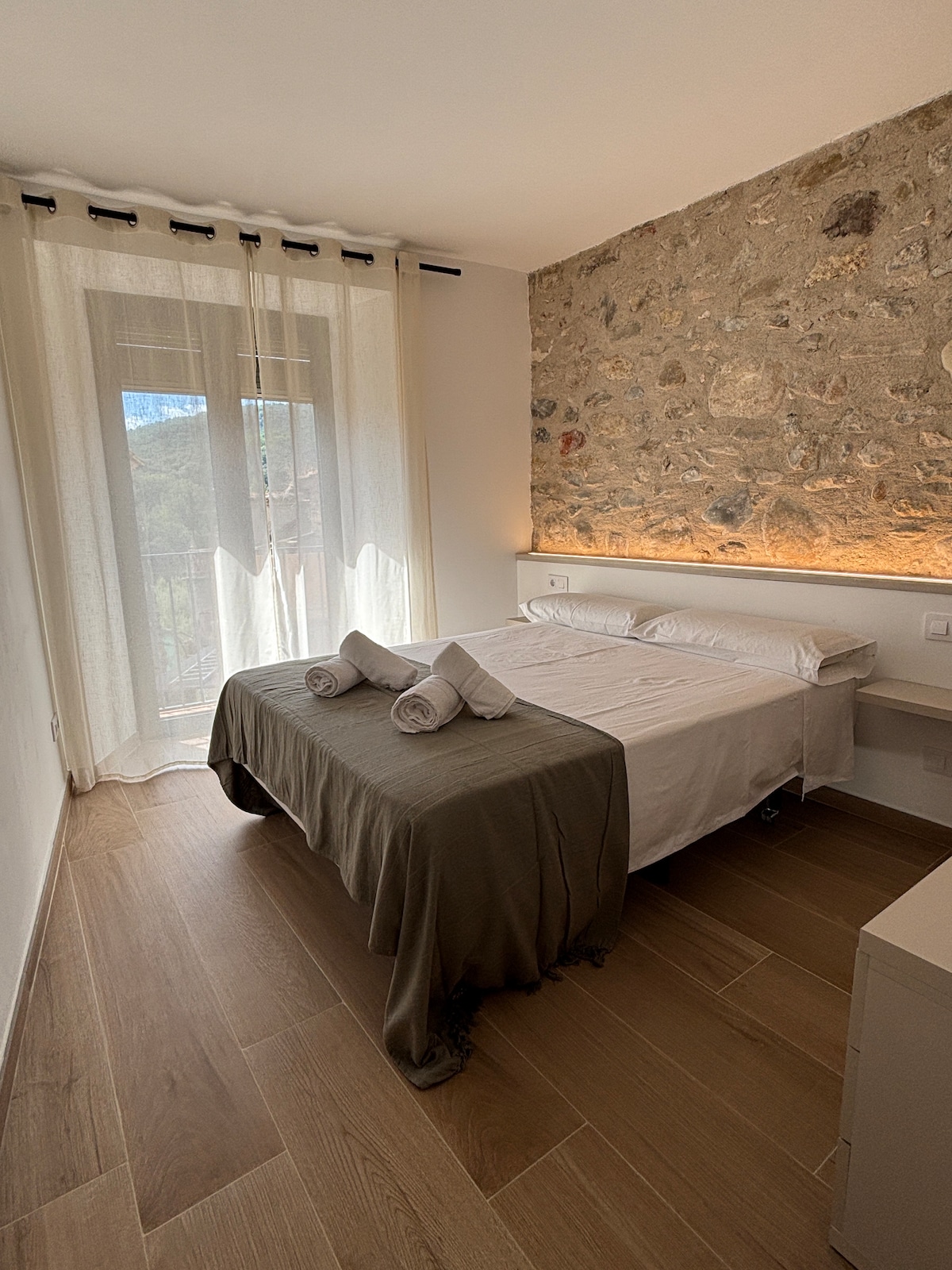 Extremely popular, luxury studio with 130+ 5 star reviews. Reserve quickly! Kick back and relax in this calm, stylish space only a 20 minute walk from Begur centre. Fully equipped studio with use of swimming pool, bespoke cabana, fantastic Mountain View’s and beautiful sunsets. Relax on your private, spacious decked terrace. The studio has air conditioning and heating, hi speed free wifi, a gas bbq, outdoor/indoor table and chairs, fully equipped kitchen and a fabulous spacious bathroom