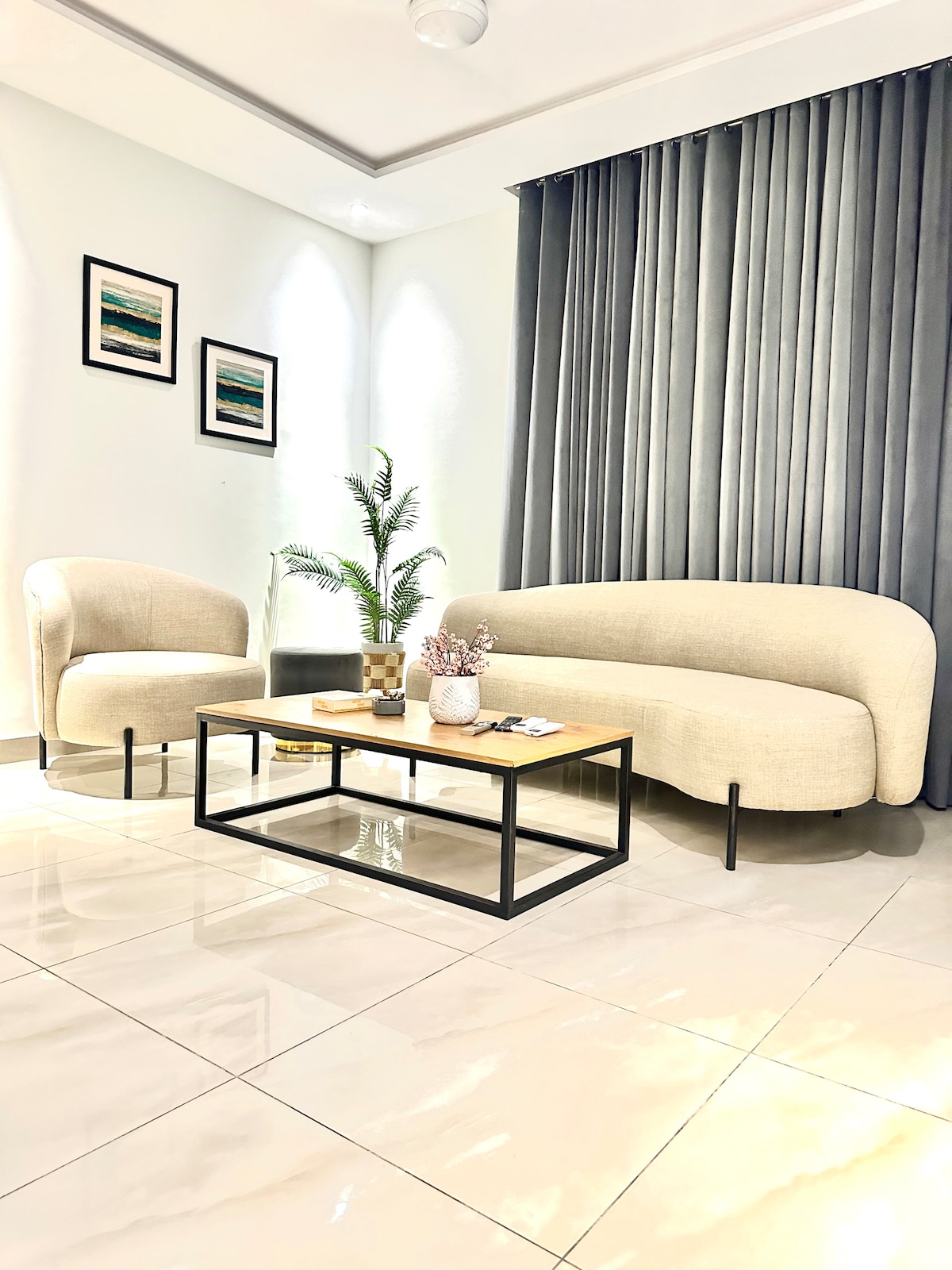 Welcome to Daró — a boutique, design-forward 1-bed apartment in the heart of Zameen Aurum, Gulberg III. Thoughtfully crafted with soft tones, modern furnishings and a calm hotel-like ambience, this space offers a private balcony, a stylish lounge with a 55” LED, a fully equipped kitchenette, fast WiFi, fresh linens, and 24/7 hot water. Ideal for married couples, business travelers, weekend escapes and long-term stays seeking comfort, convenience and a truly elevated experience in Lahore. 🌙✨