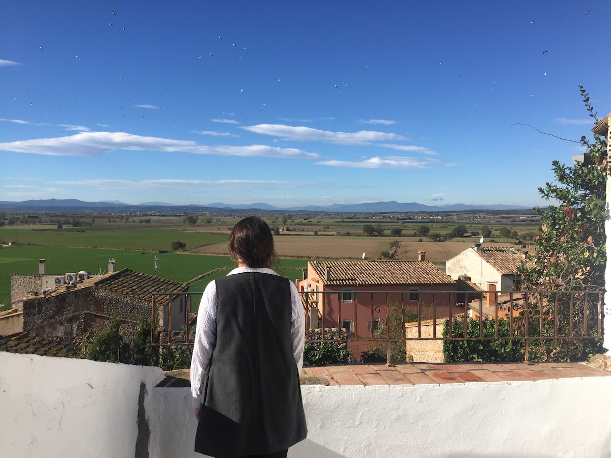 Planta baja y piscina solo para vosotros. Casa del sigloXVII restaurada recientemente y con placas solares,pueblo d 400 habitantes Zona muy tranquila, perfecto para parejas y familias. Gerona a 20 minutos. Playas de Costa Brava a 30 min. y Estartit a 15 min. Wifi fibra. Cortinas opacas.Aire acondicionado+bomba de calor en habitación y comedor. Piscina exterior salada con jacuzzi(FRIO) en su interior a temperatura ambiente. Ducha temperatura corporal en jardín Productos de limpieza en el armario.