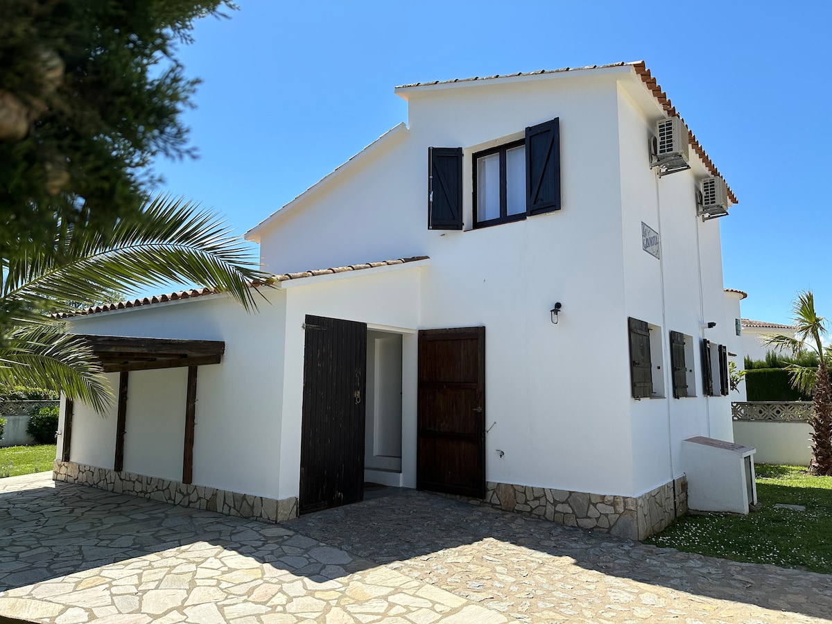 Maison empuriabrava dans les canaux et le parc naturel (avec amarre de 7mx3m selon disponibilité coût supplémentaire 200€ la semaine) Maison de 110m2, 4 chambres, 2 sdb, 2 wc, entièrement rénovée sans vis-à-vis avec vue imprenable sur le canal et grande terrasse de 35 ms2 avec petite piscine (non chauffée) de 2,5 m X 2 m ainsi qu'une plancha. Les prix sont fixes et non négociables, si des remises sont proposées elles apparaissent directement dans le total du montant de votre réservation.