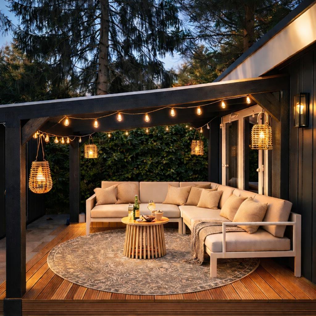 带户外座椅的袖珍小屋