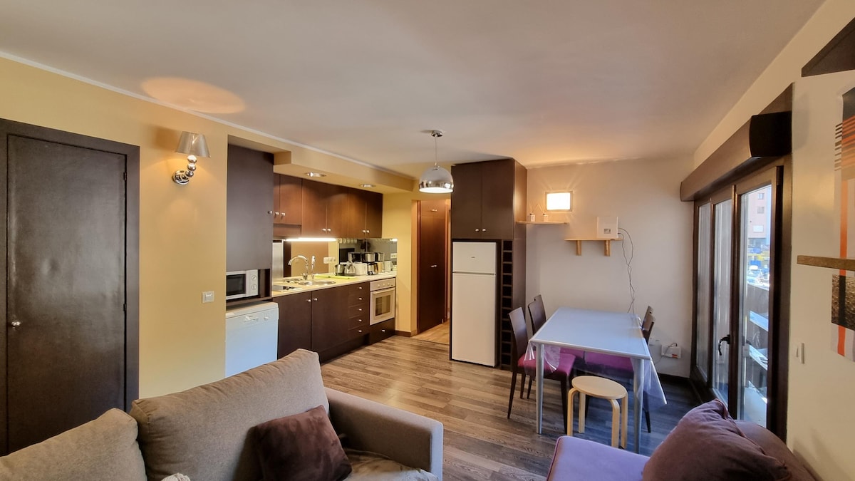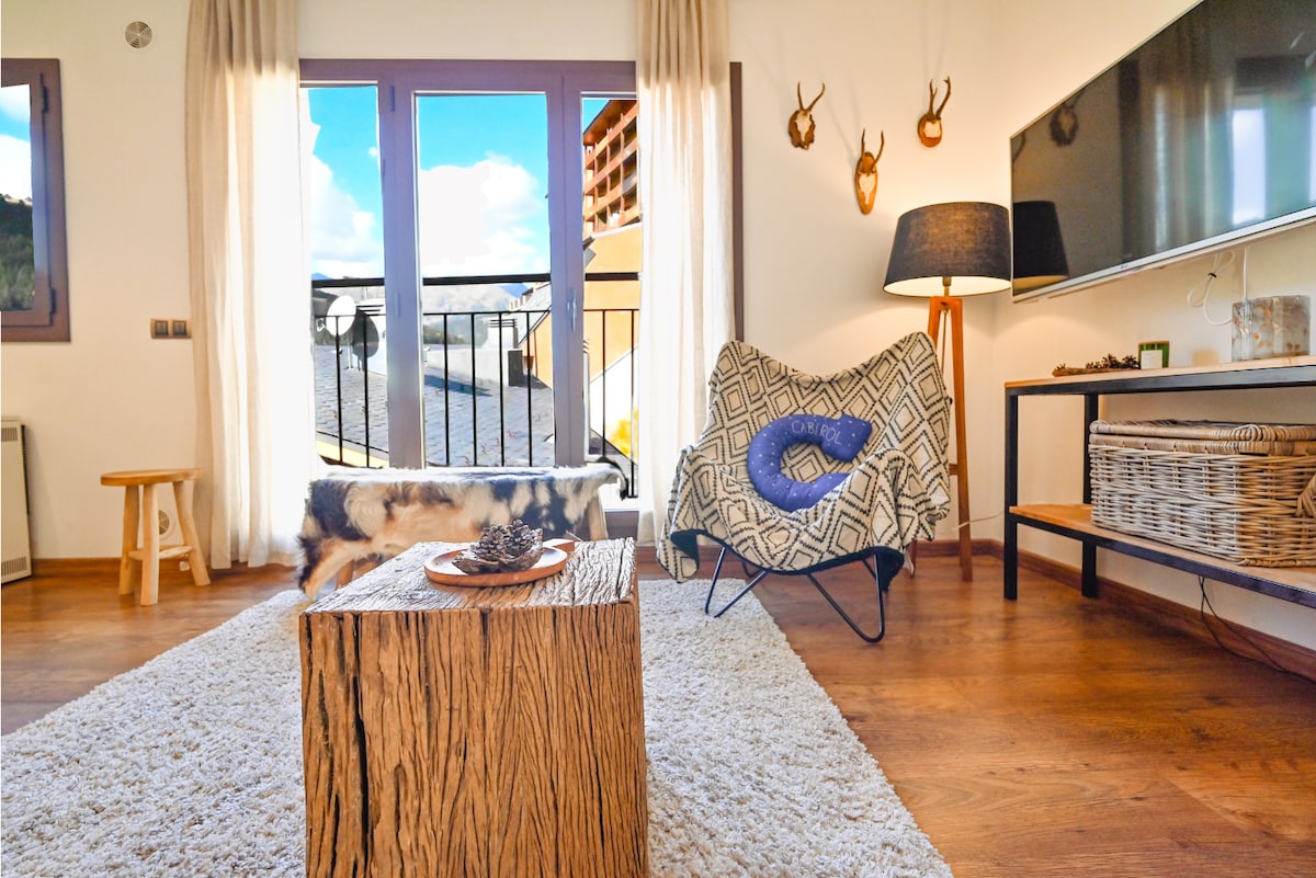 Warm apartment with incredible views that will be a source of inspiration. We offer you this charming apartment, living room with Italian opening sofa bed, smart TV, open kitchen with oven, dishwasher and washer-dryer, large bedroom with double bed with TV, closets, bathroom with bathtub... Parking space in a closed garage, with a large storage room for your bikes or your skis for your exclusive use!