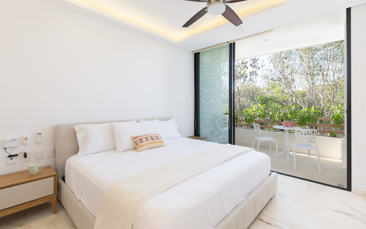 Welcome to your MayanKey hideaway in Tulum — a stylish 2-bedroom apartment designed for comfort, ease, and a relaxed connection to its natural surroundings. The open-concept living space, fully equipped kitchen, and private balcony create the perfect setting for slow mornings and easy evenings at home. Both bedrooms feature queen-size beds and ensuite bathrooms, making this an ideal choice for couples, friends, or small families seeking a calm and well-appointed stay.