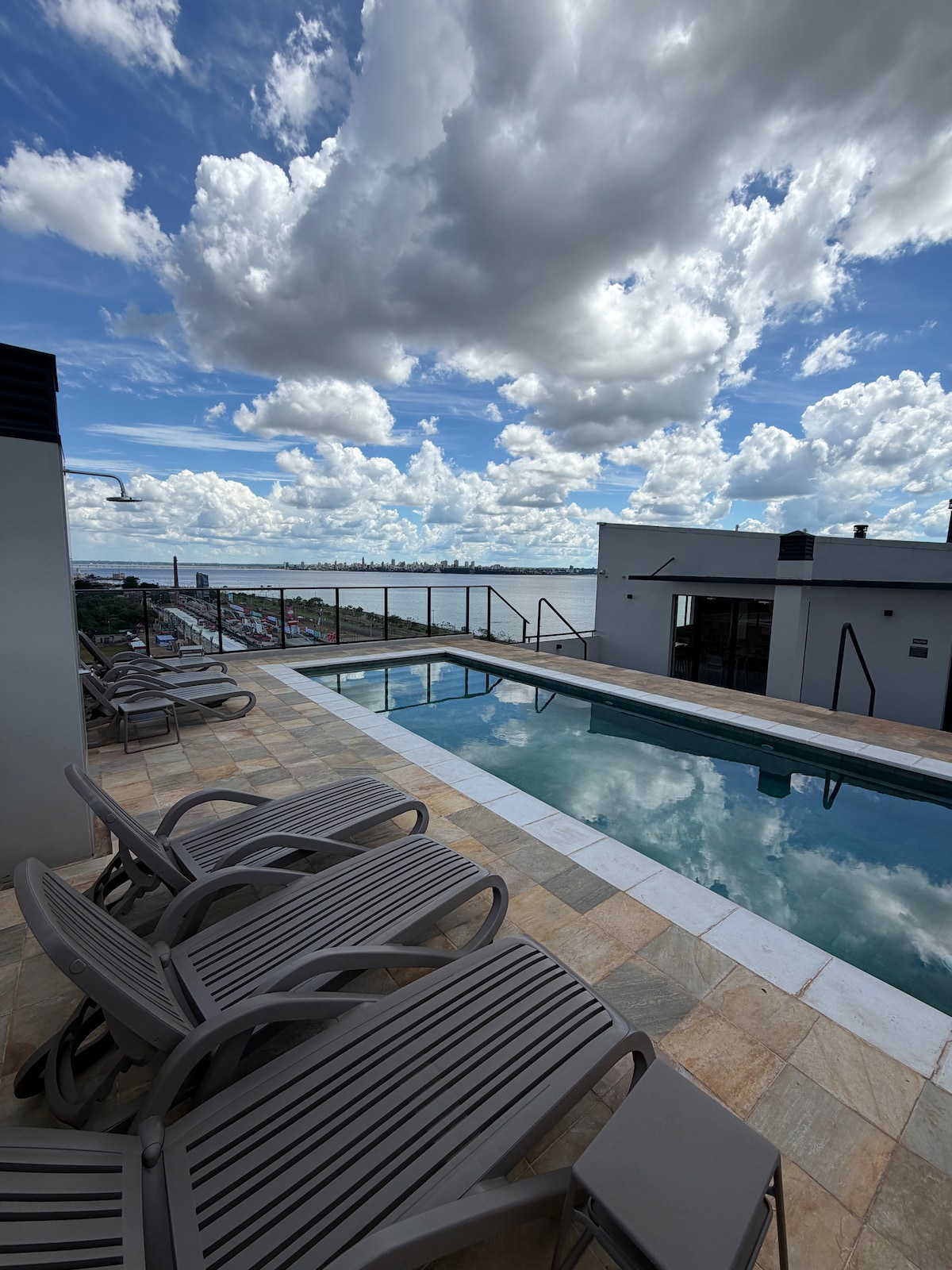 Este lugar especial está cerca de todo: va a ser muy fácil planear tu visita ya que se encuentra cerca de los lugares más concurridos de Encarnación como la costanera y el shopping. Además cuenta con una terraza de vista única con pileta compartida y quincho alquilable. El departamento es monoambiente pero espacioso con instalaciones nuevas, la cocina es moderna y completa, la cama de tamaño queen se acompaña con un armario amplio. No cuenta con cochera.