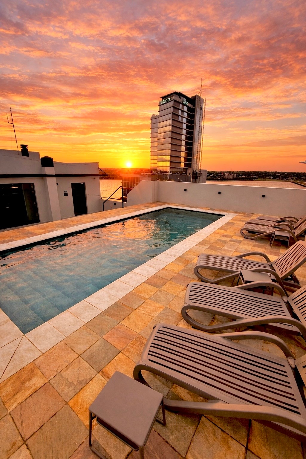 Apartamento no Edificio San Jose lV em frente a costanera paseo de Los teros que é perfeito para caminhar a noite até a playa San Jose. Nossa acomodação está bem localizada a 600 metros do Supermercado Lá Serenita com melhor preço e muita variedade, Restaurantes, cafés e lojas estão a uma curta distância a pé, 2km do circuito comercial. Destaque para a varanda e o terraço com piscina com uma vista incrível do Rio Paraná e um Pôr do sol Belíssimo. Aqui você estará na melhor localização da cidade.