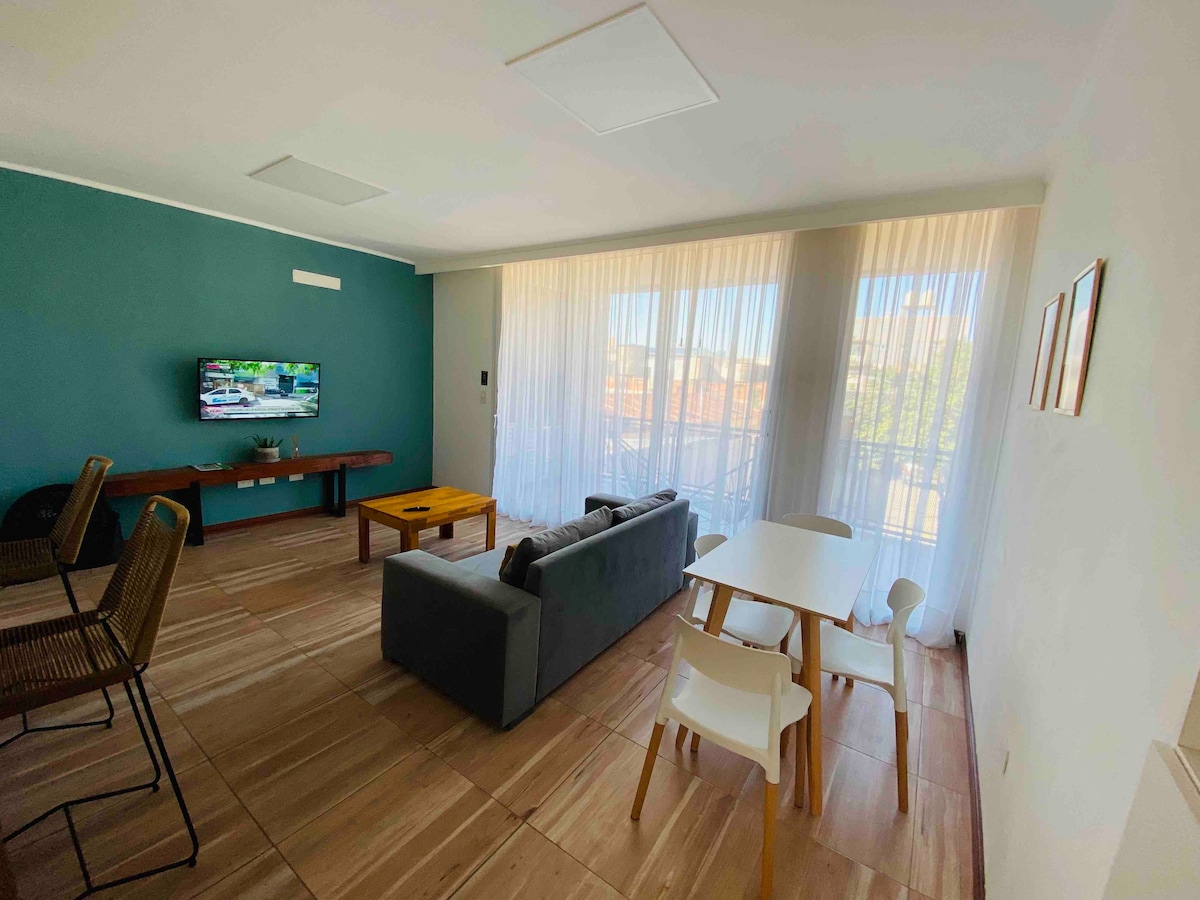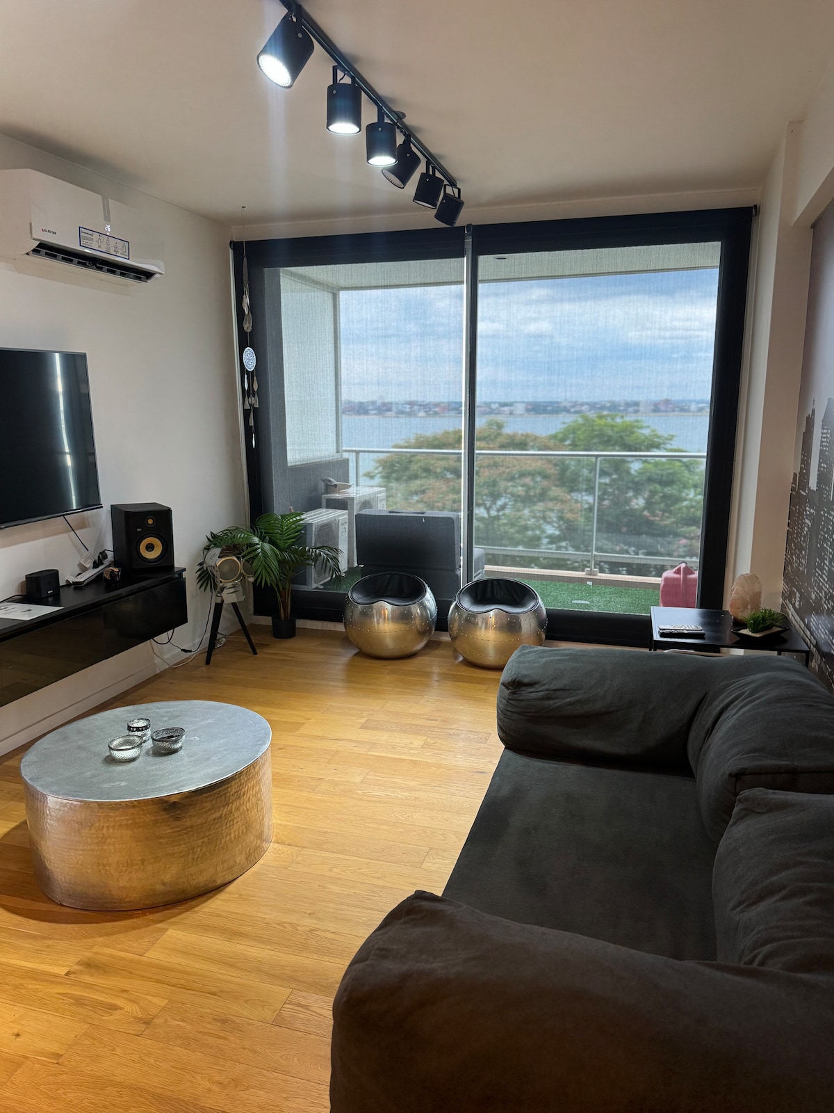 Apartamento con balcón vistas al río y excelente ubicación!📍. A pocos pasos de la Costanera, Playa San José🏖️, restaurantes🍴 y de Shopping Costanera 🛍️. Habitación principal con cama matrimonial 🛏️, sala con sofá cama(2.10 x 0.95 x 0.92) 🛋️, comedor, cocina integrada y baño moderno 🚿 Seguridad 24/7 🔒 y servicio de lavandería dentro del edificio para tu comodidad. Aires Splits en habitación y sala-comedor.