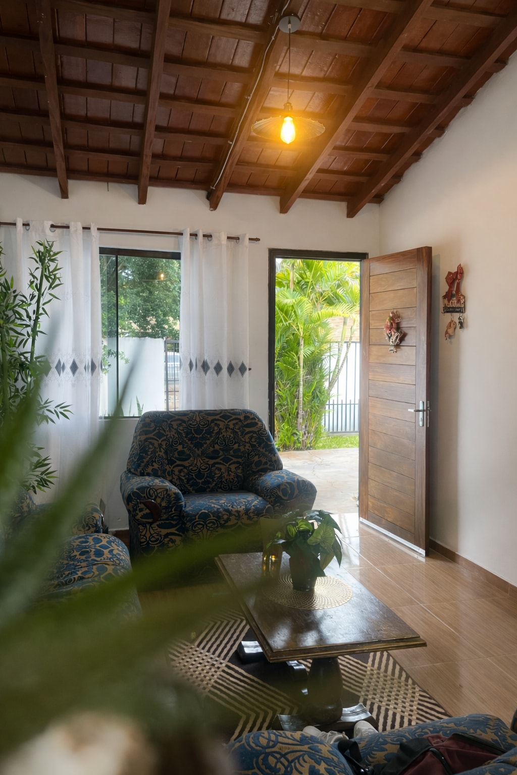El precio es para dos huéspedes con opción a tres mas. Son dos habitaciones amplias, cómodas y bien iluminadas con baño privado. Se encuentra rodeada de un kincho con horno y cocina eléctrica, horno a leña, parrilla. El patio es una pequeña selva misionera, con frondosos arboles y muchas plantas autóctonas. Nos gusta recibir a los visitantes para compartir experiencias y hacerles conocer nuestra ciudad. La hora de llegada más tarde de las 20 horas comportará un coste adicional de 3 USD