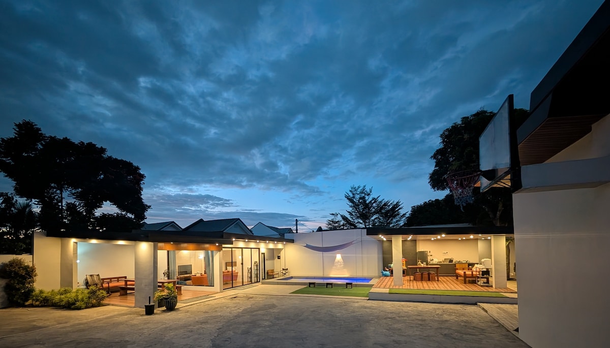 ☻ Rooms → 3 Rooms (2 Queen size Bed, 2 Full Double Bed) → Main Bedroom has home Screen Movie Projector → Fully Air-conditioned → Ceiling Fan ☻ Living Room → Sofa → Smart TV → 200Mbps Wifi → Round Table → Speaker → Boardgames ☻ Outdoor Dining & Kitchen → Fully Equipped Kitchen → Outdoor Cooking → Outdoor Lounge Area ☻ Outdoor Area → Pickleball Court (Not a professional one, good for dinking) → 4 ft dipping pool → Tables and Chairs → Camping Chairs → Griller → CCTV → Private Parking