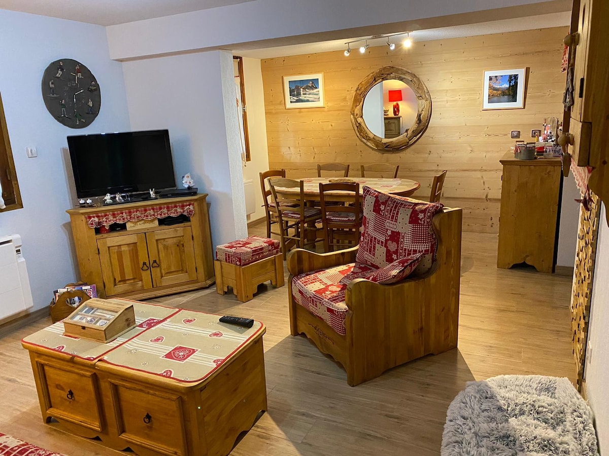 Studio lumineux de 22m² exposé ouest au 2ème étage, avec terrasse, casier à skis au rdc, ascenseur; 4/5 couchages dont canapé-lit neuf 08/2024 +2 lits superposés + lit d'appoint, sdb avec baignoire, WC séparés . équipé de: micro-onde, cafetière filtre, nespresso, plaques de cuisson, TV, sèche-cheveux, fer à repasser, barbecue électrique, raclette, aspirateur. Lit parapluie et chaise haute à disposition. Wi-Fi privé Couettes et oreillers fournis, location possible de draps et serviettes .