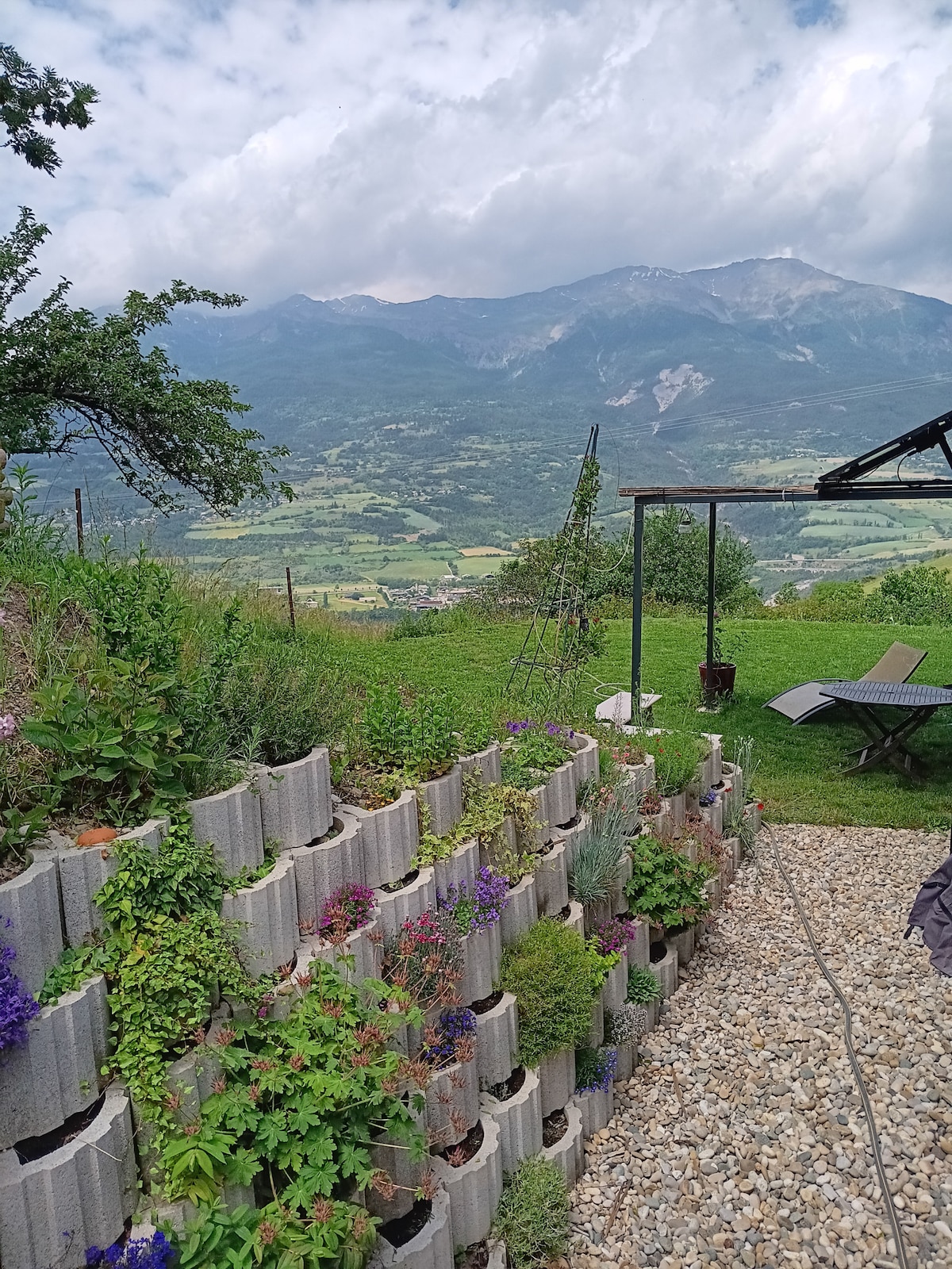 Located on the heights of the village of Réotier at 1100m above sea level. You will appreciate this 116m² wooden chalet for the view and comfort. It is perfect for families (with children). The chalet is in a very calm environment. You will have a breathtaking view of the Durance valley, the Queyras mountains with a thousand hikes, the ski resorts of Vars and Risoul, the Vauban stronghold of Mont-Dauphin (listed as World Heritage by UNESCO) and the village of Guillestre.