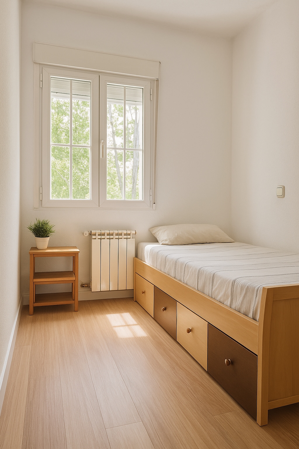 - 1 habitación con 1 cama de matrimonio 150x200 cm y 1 sofácama en el salón de 160x240 cm - A 15 min del aeropuerto conduciendo. - Acceso a Madrid central en Metro: Parada "Hospital Infanta Sofía". Línea 10. a 5 min caminando o RENFE: Parada "Alcobendas S. S. de los Reyes". Linea C-4. a 20 min caminando - Aire acondicionado y climatizador centralizado. - Smart TV - Portero 24h / 7 días. Recogida y entrega de llaves en portería. Muy flexible. - Plaza de garaje cubierta - Lavadora