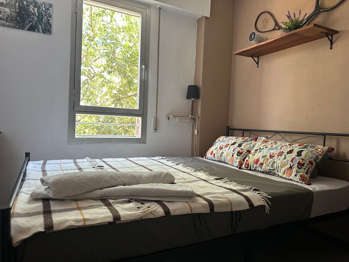 Tourist housing license. Enjoy the simplicity of this quiet and comfortable accommodation. It consists of a bedroom with double bed, a bathroom with shower and an open space with living-dining room and kitchen. It is equipped to accommodate 2 people comfortably. At 3 metro stops from the Airport, 4 min. walk from the metro station Mar de Cristal and the Shopping Center (Carrefour), and 20 minutes walk from IFEMA. Outdoor parking free of charge.