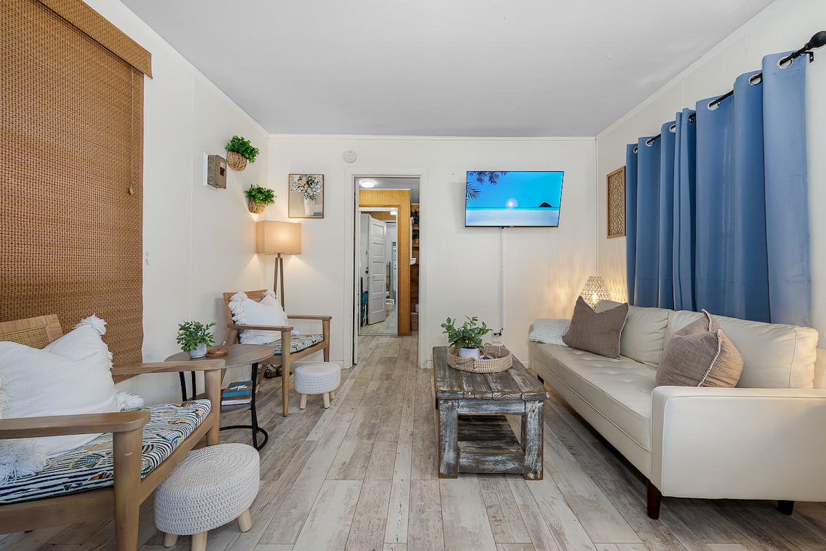 Escape to this one of a kind beach getaway in the heart of Carlsbad Village! This stylish and comfy 2 bedroom 1 bathroom property is just steps to the sand while walking distance to all of Carlsbad Village! While nestled in a picturesque beachside neighborhood, relax in your private outdoor area, complete with a dining table, BBQ, hammock, fire pit and more. Stay connected with fast 300 mbps speed WIFI and smart TVs throughout. Enjoy designated parking for 2 cars and a golf cart space if needed!