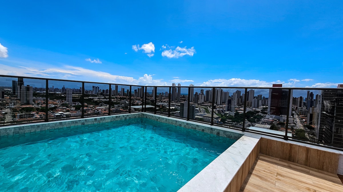 Tenha uma experiencia única de se hospedar em um apartamento espaçoso de 50m2, pé na areia em uma das melhores localizações de João Pessoa, perto de padarias, supermercados e comércios. O apartamento é todo equipado para garantir a você uma excelente estadia. O prédio ainda conta com uma piscina de borda infinita na cobertura, com uma vista incrível. Outras áreas comuns ao prédio: academia, coworking, lavanderia e uma vaga de garagem coberta exclusiva para o hospede.