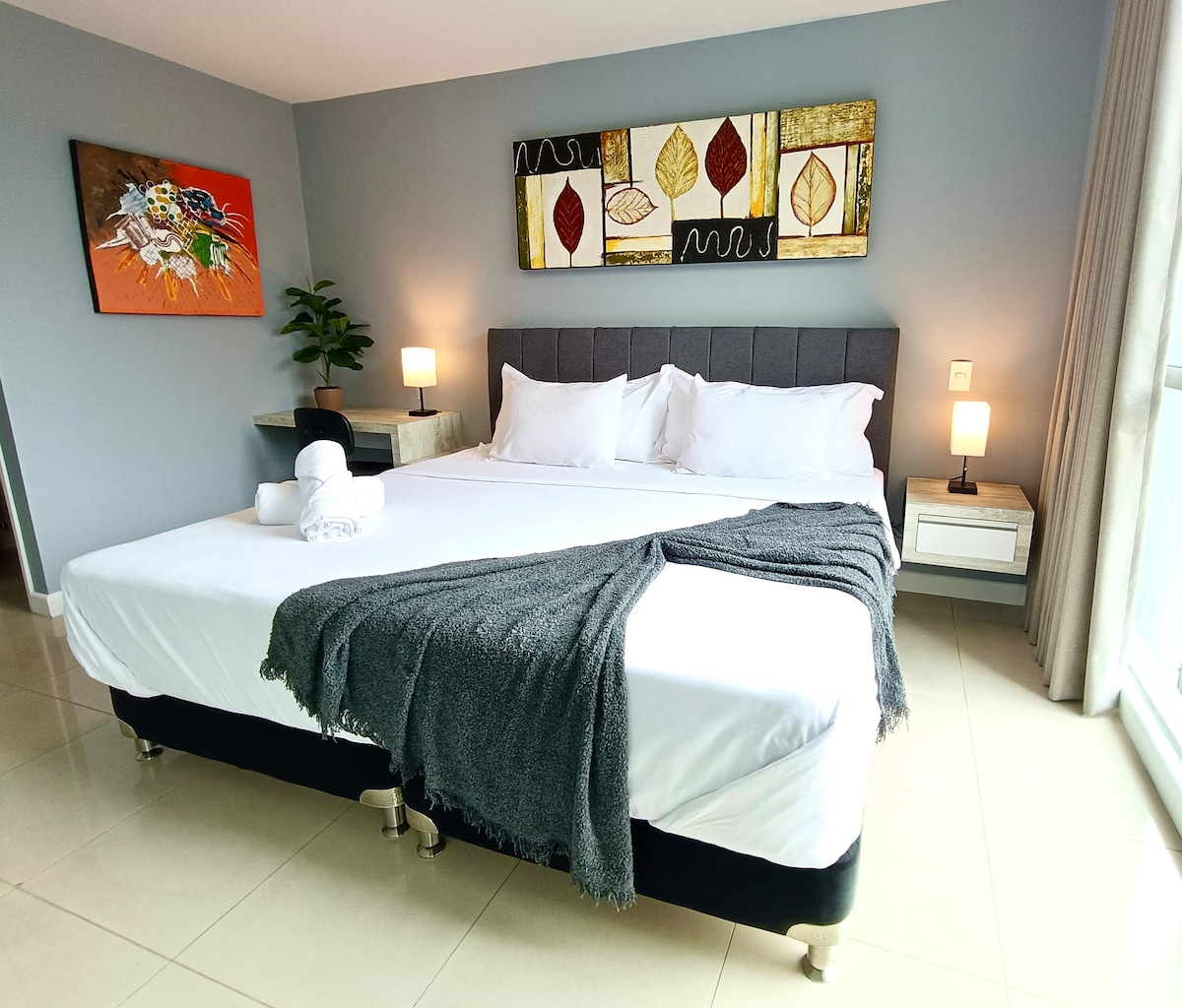 Relax in this elegant, modern apartment in the heart of Manila – El Poblado, just minutes from Provenza, Parque Lleras, and top medical centers such as Clínica Medellín, Clínica Las Vegas, and Clínica El Rosario. ✔Enjoy a king-size bed with premium linens, ✔Stylish bathroom with walk-in shower, ✔Smart TV, ✔High-speed fiber Wi-Fi ✔Fully equipped kitchen. ✔ Private balcony ✔Air Conditioning ✔ Hot Water ✨Perfect for short stays, business trips, or recovery stays.