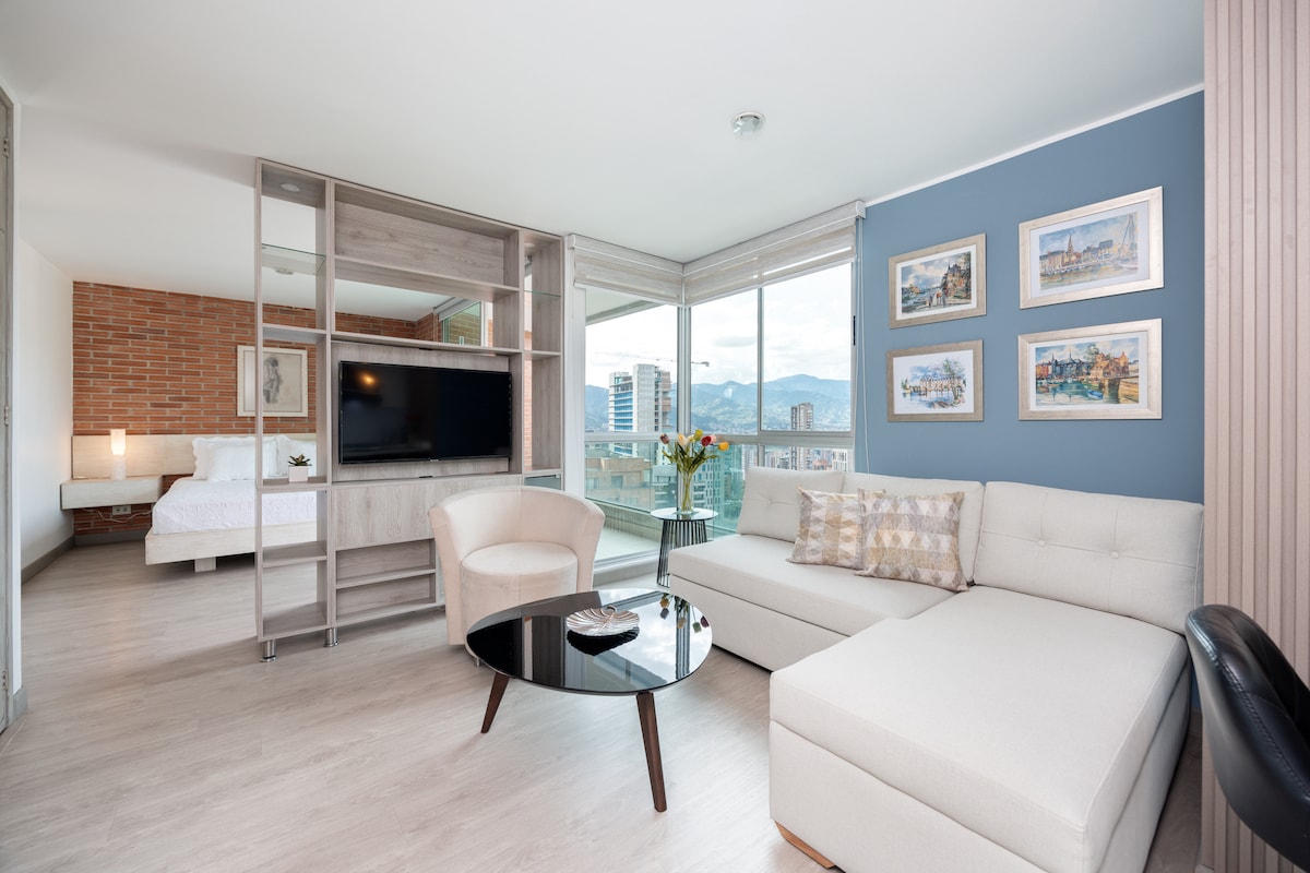 Brand new building (Hotel Urban Studios) & luxury apartment located in the best sector of El Poblado (El Tesoro), is perfect if you are looking for a peaceful and beautiful space. - Luxury interior design, furnishings - Spectacular views from Living Room, Bedroom, & Office - Full Washer & Dryer - Air conditioner In the Bedroom - 55¨Smart TVs LG - 200GB+ Wifi - Heated Pool & Jacuzzi - Steam Room - Complete modern gym - 24-hour security