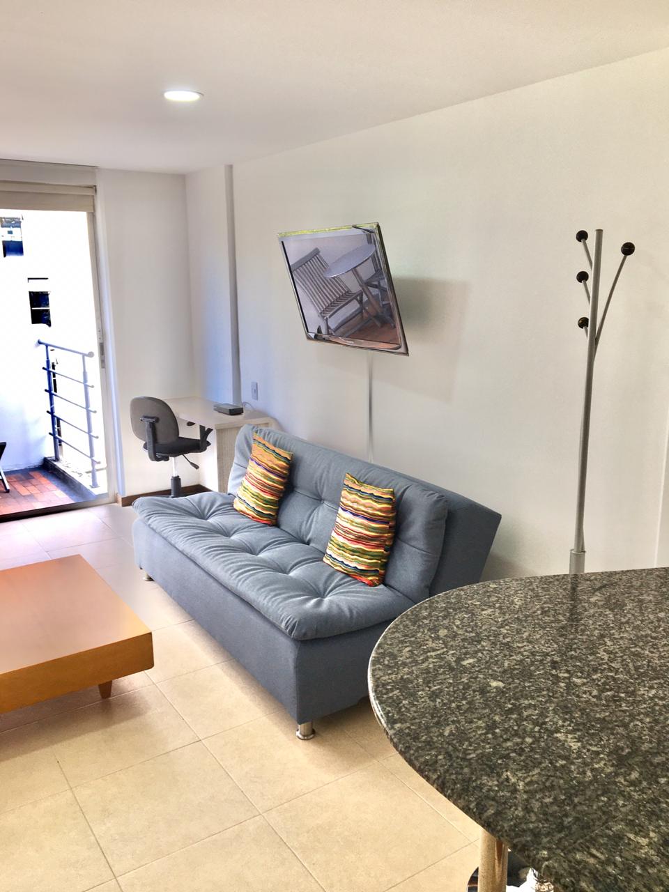 Apartamento completo con increíble vista de la ciudad. Decorado y amoblado con todo lo necesario para una estancia óptima. Estratégicamente ubicado en un moderno edificio con vigilancia las 24 horas, seguridad perimetral, elevadores, estacionamiento, acceso a la piscina, terraza, baño de vapor y gimnasio. Ubicado cerca a los restaurantes, bares, cafeterías, supermercados, boutiques y zona comercial del Lleras, Provenza, Manila y Astorga en el Poblado.