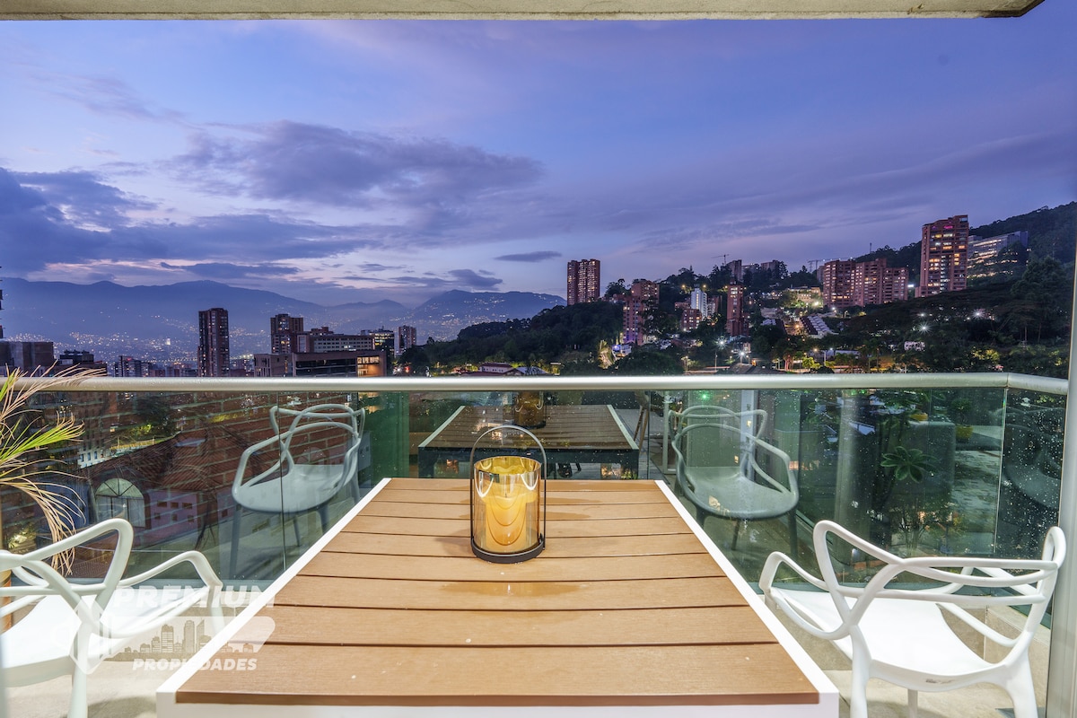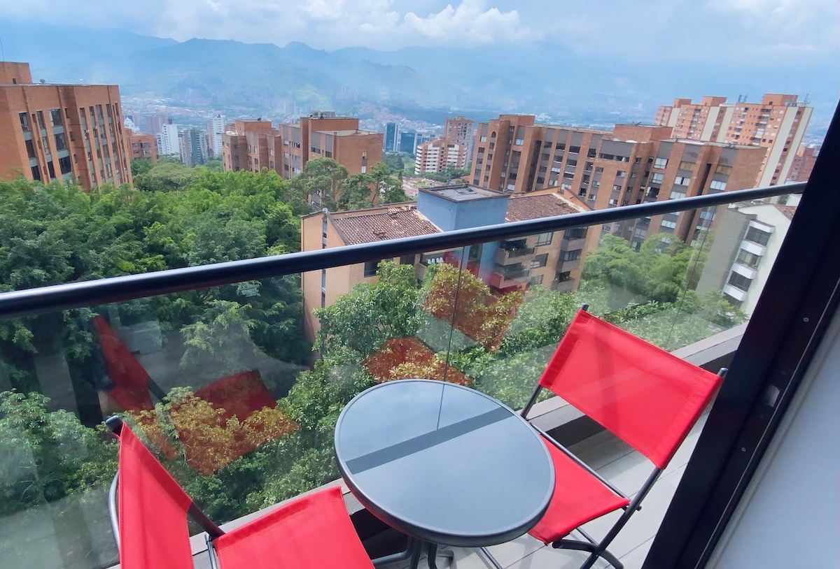 * 21st floor views * Parking Assigned at Fourth Floor. * Market in the building * Washer and Dryer * Fully equipped kitchen * 4k Smart TV * Netflix * YouTube Premium * Workspace * Coffee maker * Sofa bed * 500 Mbps internet speed * Located in El Tesoro in the heart of Poblado * 4-min to Provenza/Lleras * 4-min to El Tesoro mall