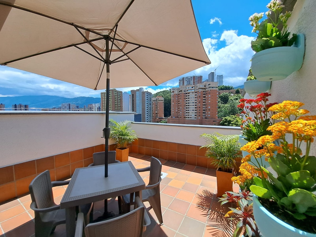 Poblado Penthouse. 2 Floor, 4 BR/4 Bath, AC, BBQ
