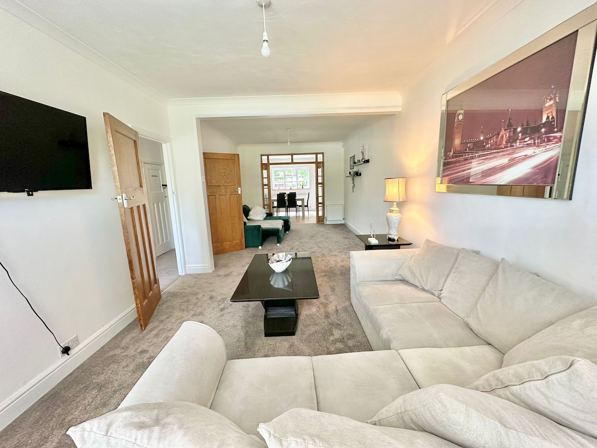 SLEEPS 7 - Stay in our modern, spotless Cheshunt home – just 25 min by train to central London! Enjoy 4 stylish bedrooms, a fully equipped kitchen, smart TV with Netflix, superfast Wi-Fi, and a private garden. Perfect for families, friends, or business trips, with free on-site parking and shops, cafes, and nature walks nearby. Comfort, convenience, and style all in one place!