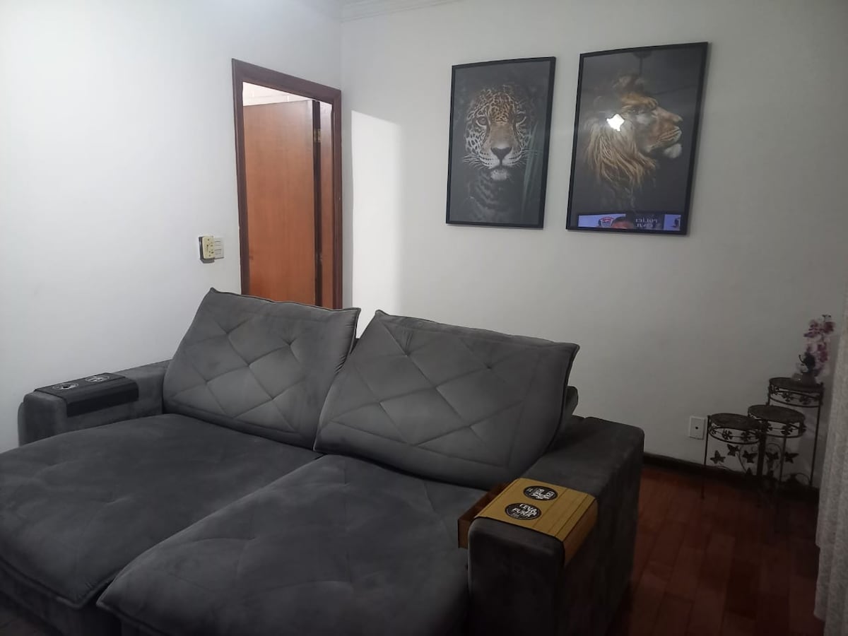 Bem-vindo ao Aconchego, o local mais tranquilo e bem localizado da cidade! Nosso espaço foi pensado em oferecer uma estadia confortável e prática, com tudo que você precisa para se sentir em casa. Acomodamos 5 pessoas oferecendo TV smart, wi-fi, espaço home office, cozinha completa com airflyer e sanduicheira, máquina de lavar, roupas de cama e banho, além de vaga coberta exclusiva para hóspedes. E ainda, temos guloseimas para tornar sua estadia ainda mais agradável. Aguardamos você 😊