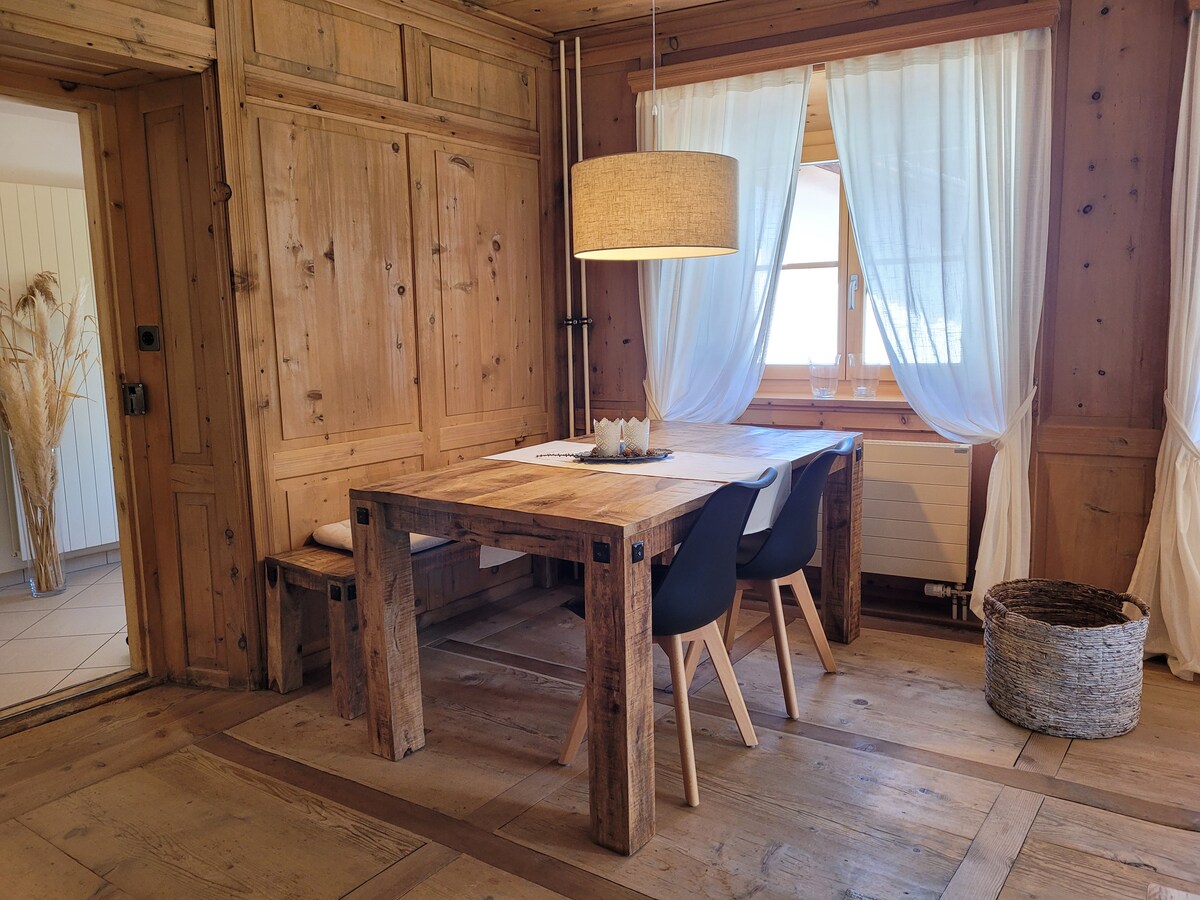 Penthouse Apartment in a old renovated Farmhouse ( 100m2) with ambience and beautiful views . The spacious eat-in kitchen and a cozy living room invite guests to enjoy the days in Susch to the fullest. The house is located in the enchanting district of Surpunt in a quiet location, surrounded by nature. Next to the house there is also an open horse stable, which can be rented. The cross-country skiing trail is right outside the door and the beautiful Muzeum Susch is always worth a visit.
