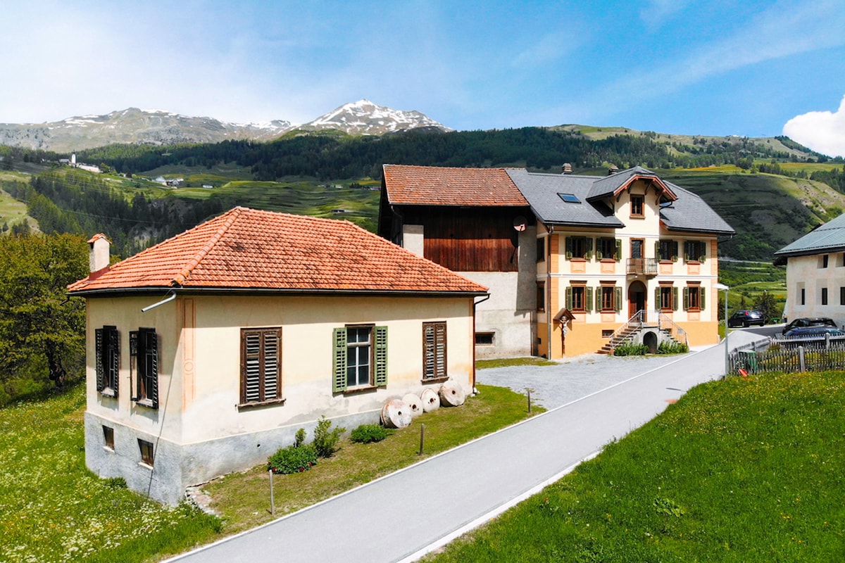 This unique Art Nouveau apartment is set in a spacious house built in 1902. It's an excellent accommodation for up to 4 guests looking for comfort in historical surroundings. Geographically, the house Grava in Susch is an ideal location to explore the entire Engadin valley by car or train. St.Moritz in the Upper Engadin, Scuol in the Lower Engadin and Davos across the Flüela pass are 30 to 45 minutes away. A train journey to Zürich airport lasts less than 3 hours.