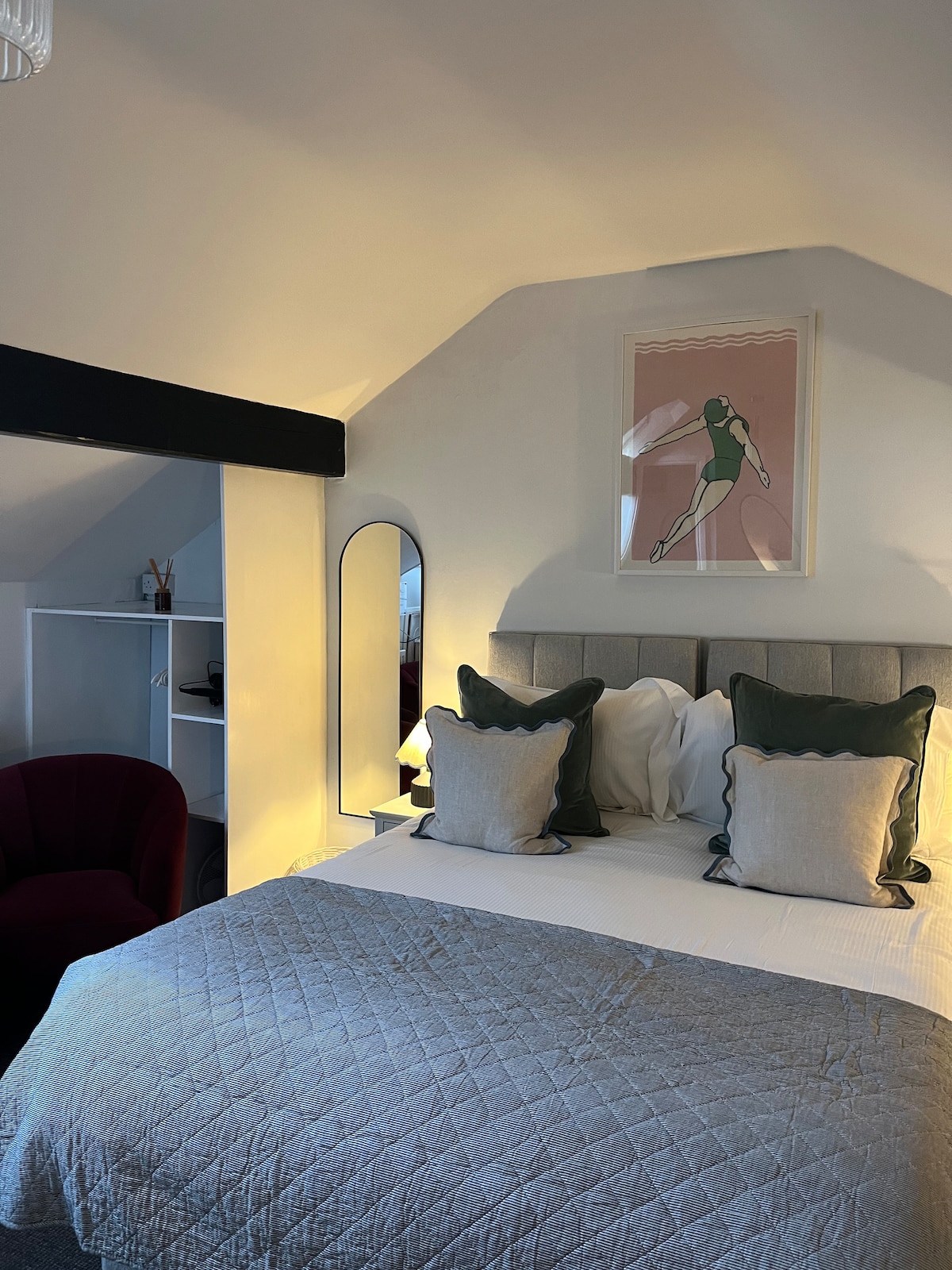 The Hugo is a brand new collection of beautifully appointed en-suite air conditioned rooms located on Canterbury High Street. Furnished by BoConcept Canterbury and with luxury Temple Spa toiletries, No. 3 The Hugo is the perfect base for your short stay in Canterbury. This small but stunning room will wow you with its opulent colour scheme and furnishings, spacious shower room and soft bed. Wake up to a freshly brewed Nespresso coffee ready to head straight out into the City.