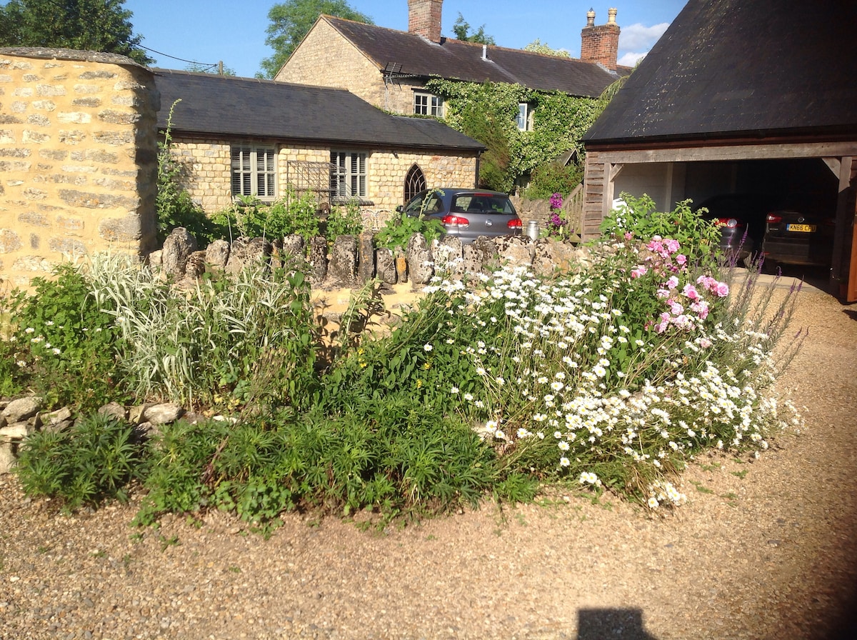 Unique luxury cottage for two, an ancient dovecote with a fabulous swimming pool. Beautifully furnished, romantic and spacious, in gorgeous peaceful countryside, the thick stone walls make it warm and cosy in winter, cool in summer as well as quiet and private. Upstairs there is a very comfortable super kingsize bed, a rolltop bath, a huge velvet sofa and a 50" TV. Downstairs is a shower room, kitchen and large dining area. Lovely walks from the door and close to Salisbury, Longleat & Stonehenge