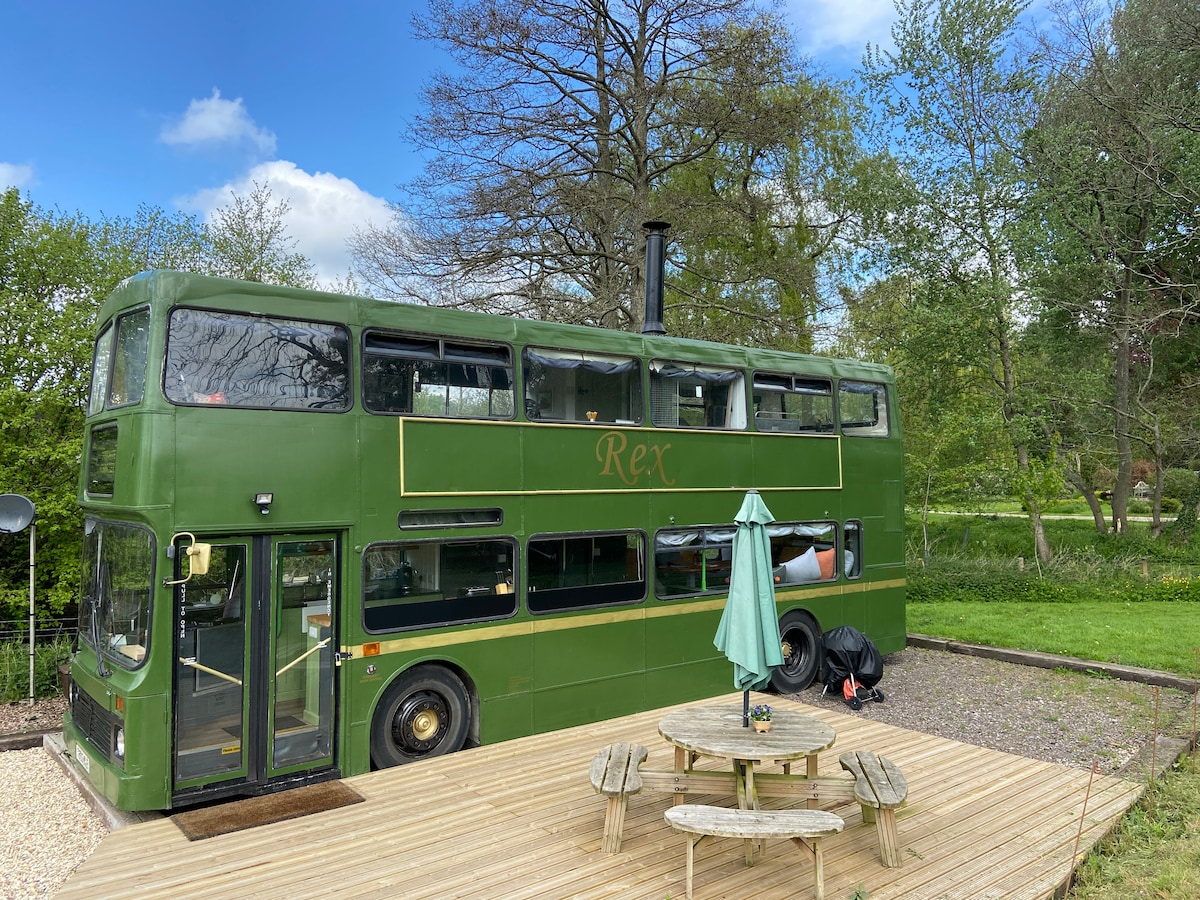 "Rex the Bus" is unique, fun and just a little bit quirky. This double decker bus has been converted to the highest standard and connected to mains electricity, water and drainage. Enjoy panoramic views of the countryside from the windows, watch the sunrise from your double bed or cabin bunk bed. Heating and a wood-burner will keep you warm and snug, whilst the kitchen area provides plenty of space to cook up a delicious meal. There is a shower downstairs and a loo and basin upstairs.