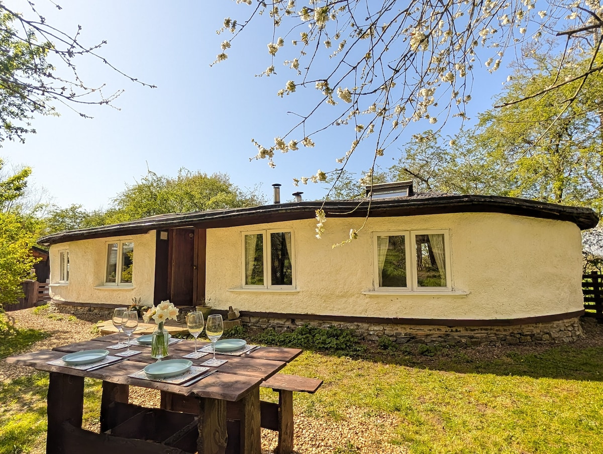 Cosy Hobbit House with fire pit, private garden, and stunning countryside views at Sychpwll. This unique cob-built house has two bedrooms (king and double), a private bathroom with electric shower, and an open-plan kitchen/dining room. The house is heated by two wood burners, laid for you on arrival with a basket of logs. Extra wood can be brought from us. Outside, enjoy your garden with seating , fire pit, and relax in the peace, wildlife, and countryside. Guests also have access to the river.