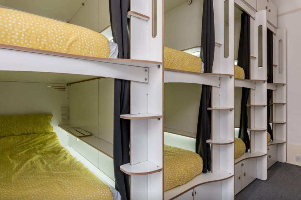 This is a small, private room for 1 or 2 people. Additional charges apply for the 2nd person (children count as '1 person'). PLEASE NOTE this room does not have an external facing window. It is however fully ventilated with a window into a corridor. Cohort is situated in the centre of St Ives within a few minutes of all eateries, beaches, galleries & shops. Rooms are uniquely designed with individual USB ports, plug sockets and lights by each bed. All bed linen is inc. (not towels).