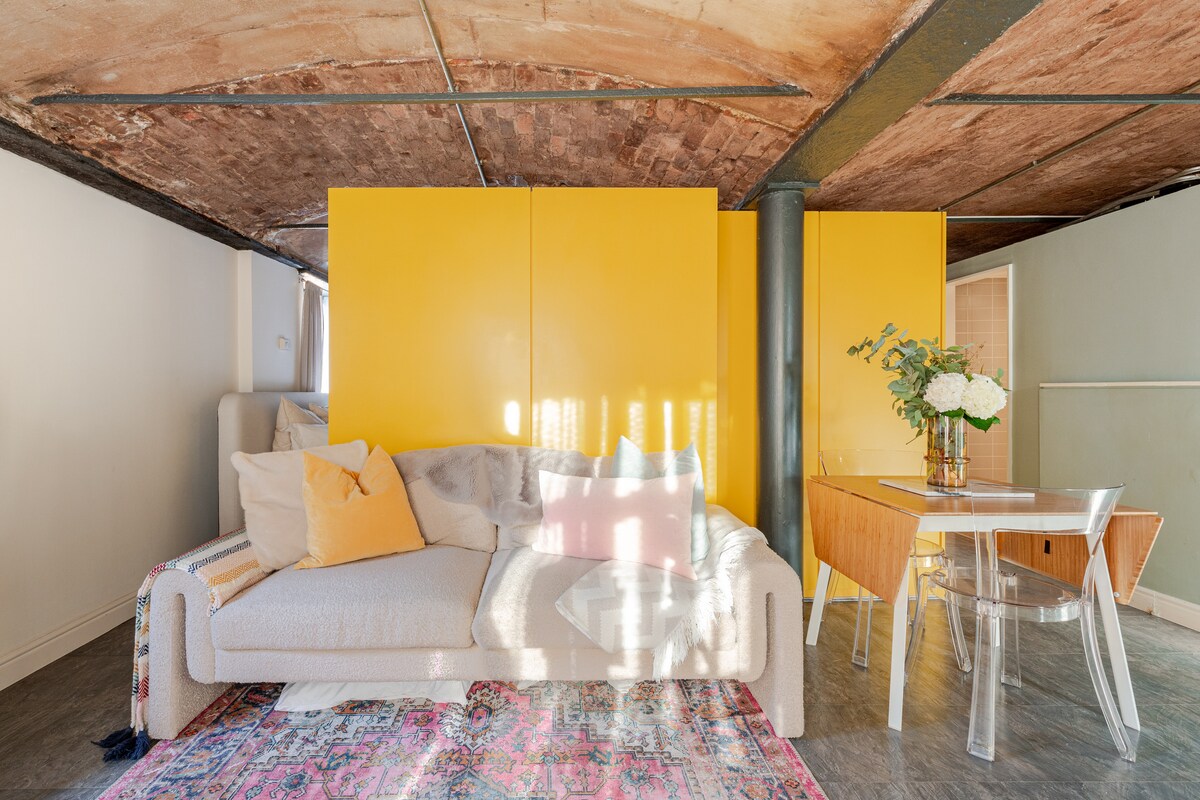 Open-plan loft in the heart of Cambridge, charming Newtown neighborhood. Set over two floors, this bright and airy apartment features a spacious living area with high ceilings and a well-equipped kitchen and dining space. Ideal for couples, the flat comfortably sleeps up to four guests with a bedroom downstairs and futon sofa bed in the living area. You’ll also enjoy direct access to a small garden. 5 minutes from the train station, and surrounded by pubs, shops, and restaurants.