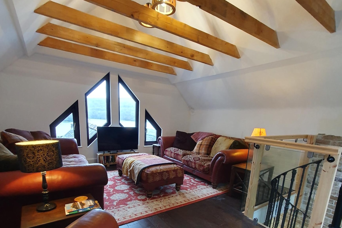 Stylish & unique, self- contained historic Chapel conversion overlooking stunning scenery, (Chater Valley) tucked away at the edge of Conservation Village, 5 min drive from R.Water. Private. Sleeps 4 1 king-size & 1 small DBL Kids 8+ welcome Park free outside Quiet & very rural. Grade ii Listed. Modern interior feat. in "Living Etc" , on TV & won a local design award New for 2025-advanced ai heating system Owners next door COMPLETELY OPEN PLAN Internal walls around Bathroom only.
