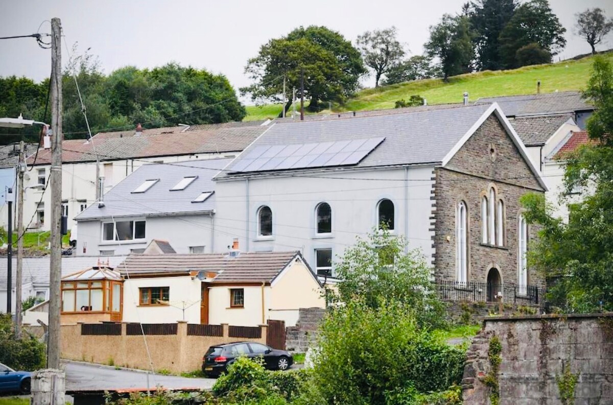 The historic grade 2 listed former chapel in the Brecon Beacons National park, Bannau Brycheiniog, International Dark Sky Reserve, overlooking the Black Mountains. Surrounded by beautiful countryside it provides a great base for walking and exploring the stunning scenery. Nearby is the famous Carreg Cennen Castle and the historic towns of Llandeilo and Llandovery. The Milky Way is seen crossing the skies on moonless nights. There is a beginners telescope available for the use of our guests.