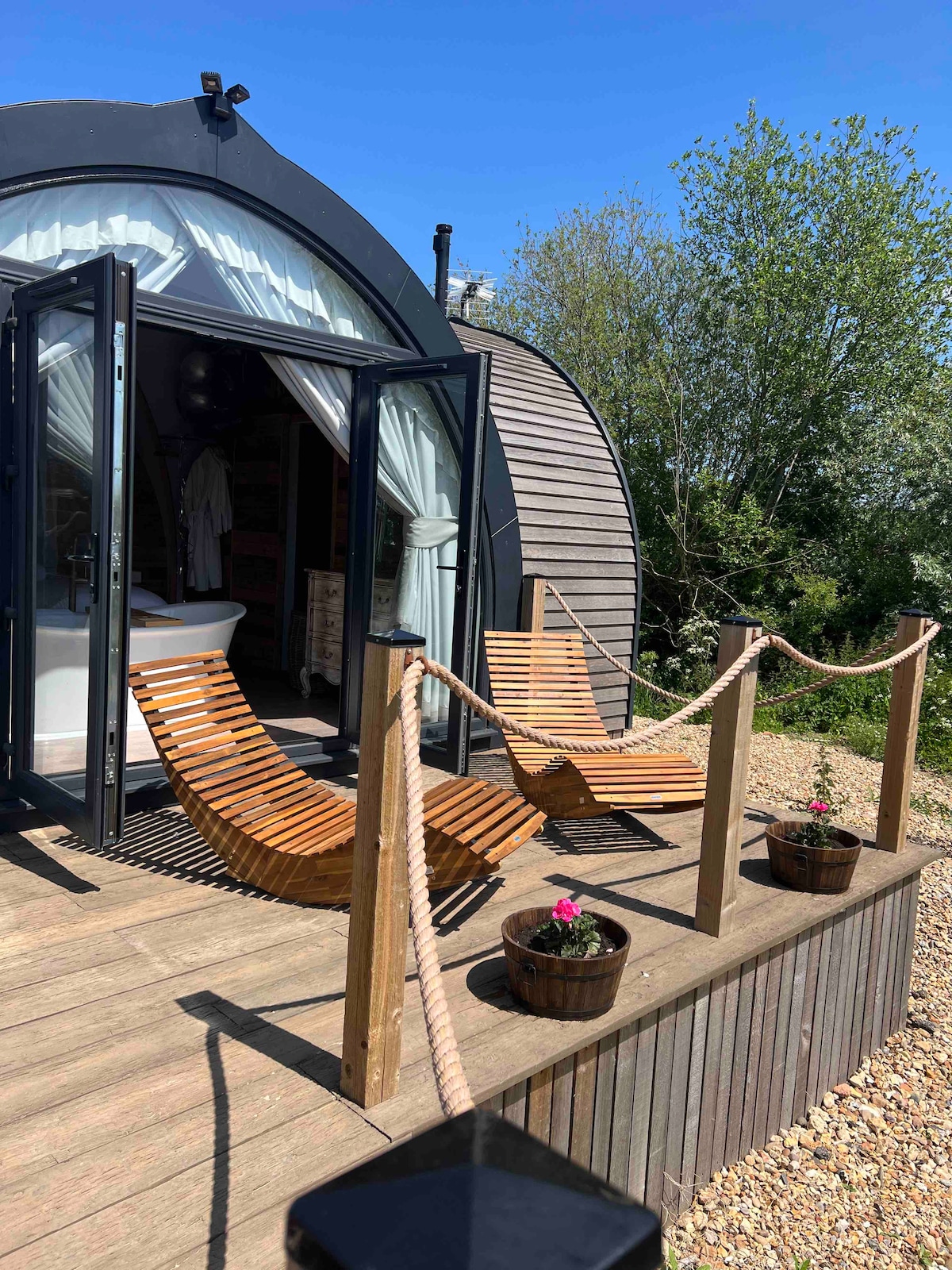 Escape to our glamping cabin nestled in the Cotswold countryside. Offering a perfect blend of comfort and natural beauty this self-contained pod gprovides a quiet retreat for two. • King-size bed with natural sheep’s wool duvet and feather pillows • Private, fenced outdoor space • Pre-heated Wood-fired hot tub and wood fired sauna included the price • Cozy Geodome • Kadia fire bowl • Gas-fired BBQ for outdoor cooking Wood fired sauna available as a separate booking.