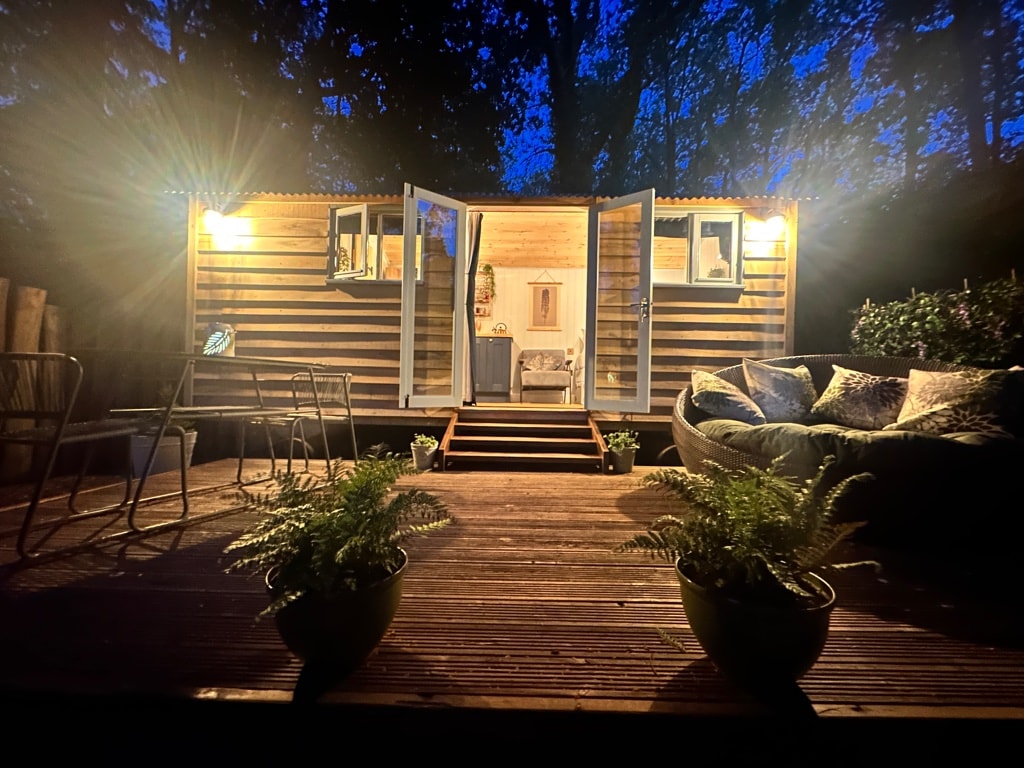Tucked away in the Herefordshire countryside, our hand-crafted shepherd’s hut is a secluded retreat designed for couples seeking peace and privacy. Inside, enjoy a cosy wood burner, double bed, ensuite shower room and a thoughtfully equipped kitchen with breakfast bar. Outside, unwind in your private Scandinavian wood-fired hot tub beneath the stars. A perfect year-round escape to slow down, switch off and explore the Welsh borders.