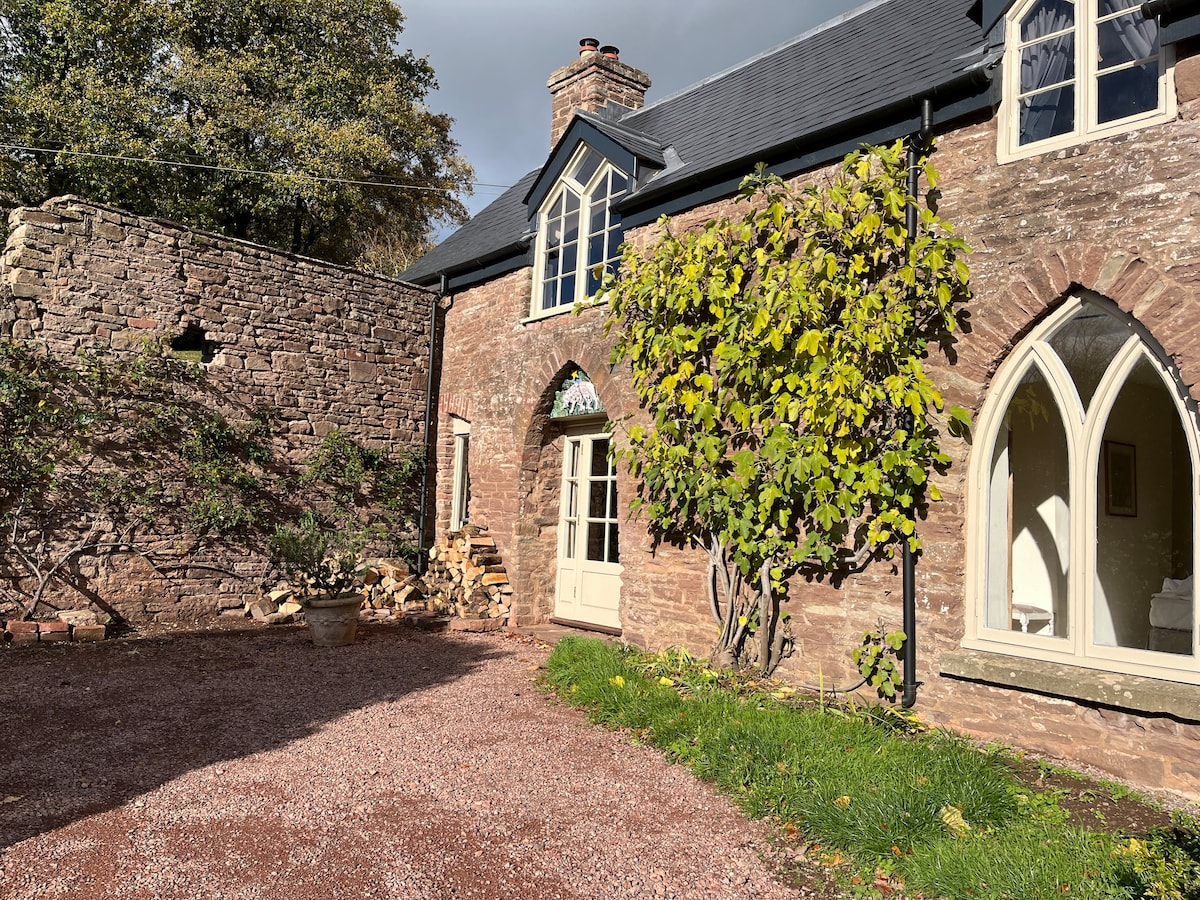 Perfect english cottage newly restored to the highest standards. Wonderful ancient living spaces throughout with central heating (underfloor) as well as woodburners. Magical clean air and purified spring water. Ideal base for walks in the woodlands and bio-diverse meadows behind, to the river below, and in the mountains beyond, or just to relax in. 100+ Megabyte Wifi and good space for working. A rural idyll.