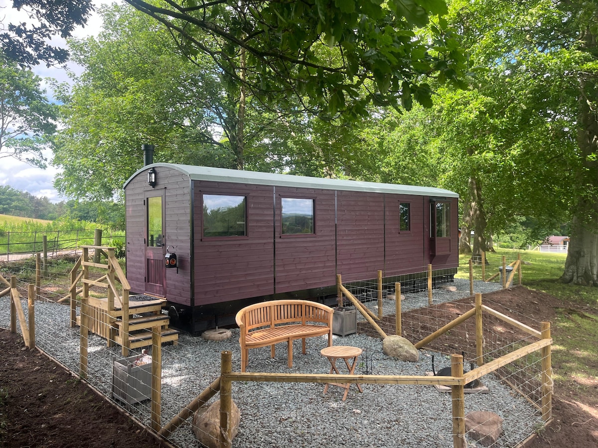Private, Cosy, Art Deco inspired Railway Wagon. 1 of 2 wagons, set in the grounds of our working family home in the Corvedale. An area of outstanding natural beauty in South Shropshire countryside. Spectacular views with Red Kites often seen circling overhead & pheasants strutting around the garden. Self contained wagon, suited to couples, walkers, cyclists, bikers, star gazers & anyone wanting a charming glamping experience. Check out our other GWR Wagon too, Victoria if dates are occupied.