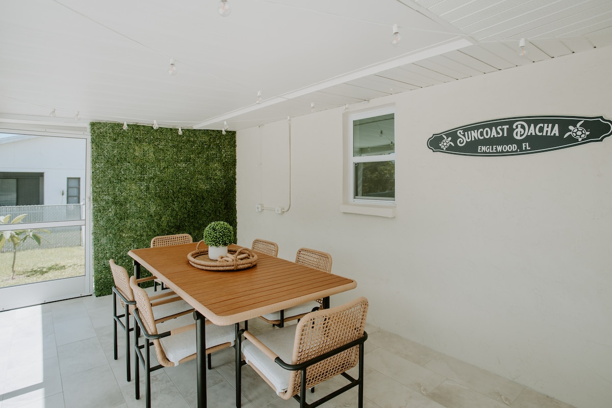 Complimentary golf cart INCLUDED. With a short stroll to warm sand and crystal waters of Englewood Beach. With all the the modern comforts in place all you have to do is relax on your short stay or extended visit. Updated 2/2 main house and 1/1 Casita with a private entrance. Walk right out the front door to the new expansive pool patio featuring a saltwater heated pool, outdoor kitchen and plenty of furniture for spending time soaking in the warm Florida sun!