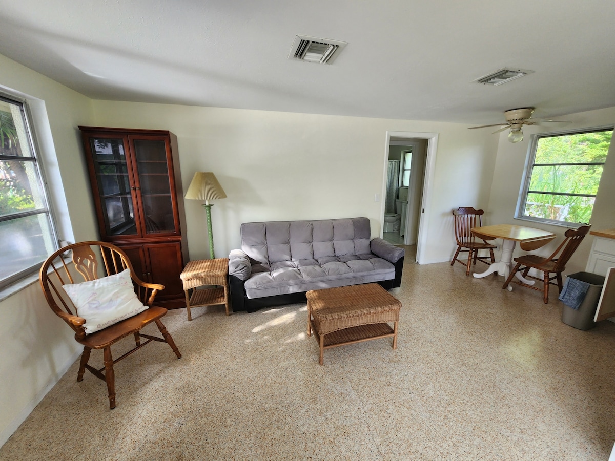 Looking for a list of local recommendations? Shoot me a message! Welcome to 🍍 The Cozy Cove - Nestled in the heart of Old Englewood, our quaint little retreat offers the perfect blend of charm, comfort, and coastal vibes. Just minutes from the beach, this cozy hideaway is perfect for solo travelers or couples looking for a peaceful escape. Sleeps 2-3 Adults or 2 adults and 2 children 1 bedroom (Queen Bed) (Queen Sleeper Sofa in Living Room) 1-bathroom